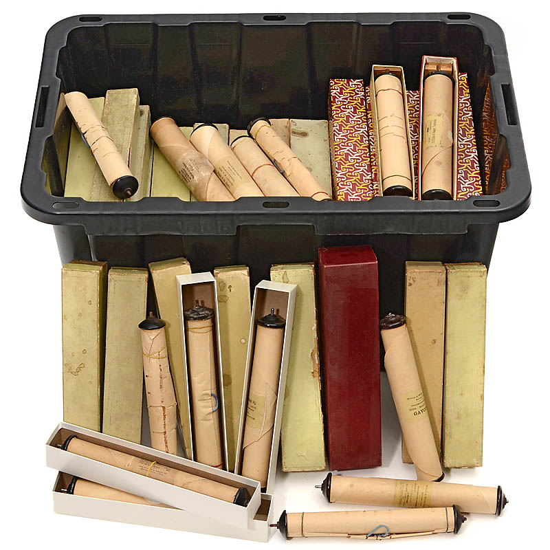 Manufactured by "Wilcox & White", "Symphonie" model, 44 notes, 10 stops, speed control, in large walnut case with etched mirrors, playing condition, needs more air, size 51 ½ x 22 x 73 ½ in., with approx. 60 rolls.