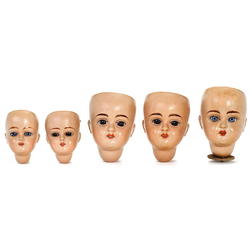 5 Celluloid Doll Heads by Rheinische Gummi und Celluloid Fabrik,