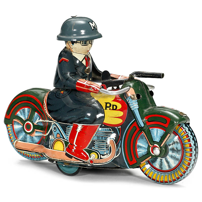 By Sato Trade Mark, Japan, lithographed tin, friction-drive, working, length 5 ½ in.