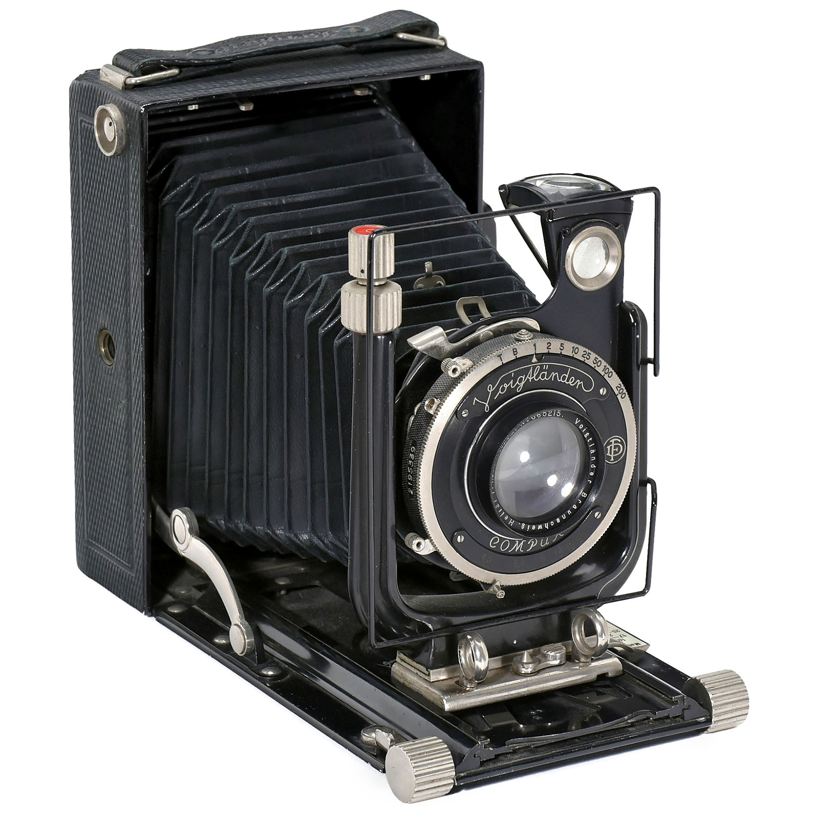 Voigtländer, Braunschweig. Fourth model, no. A 518044, size 9 x 12 cm, Heliar 4,5/13,5 cm in rim-set Compur, original focusing screen back. Nice condition!