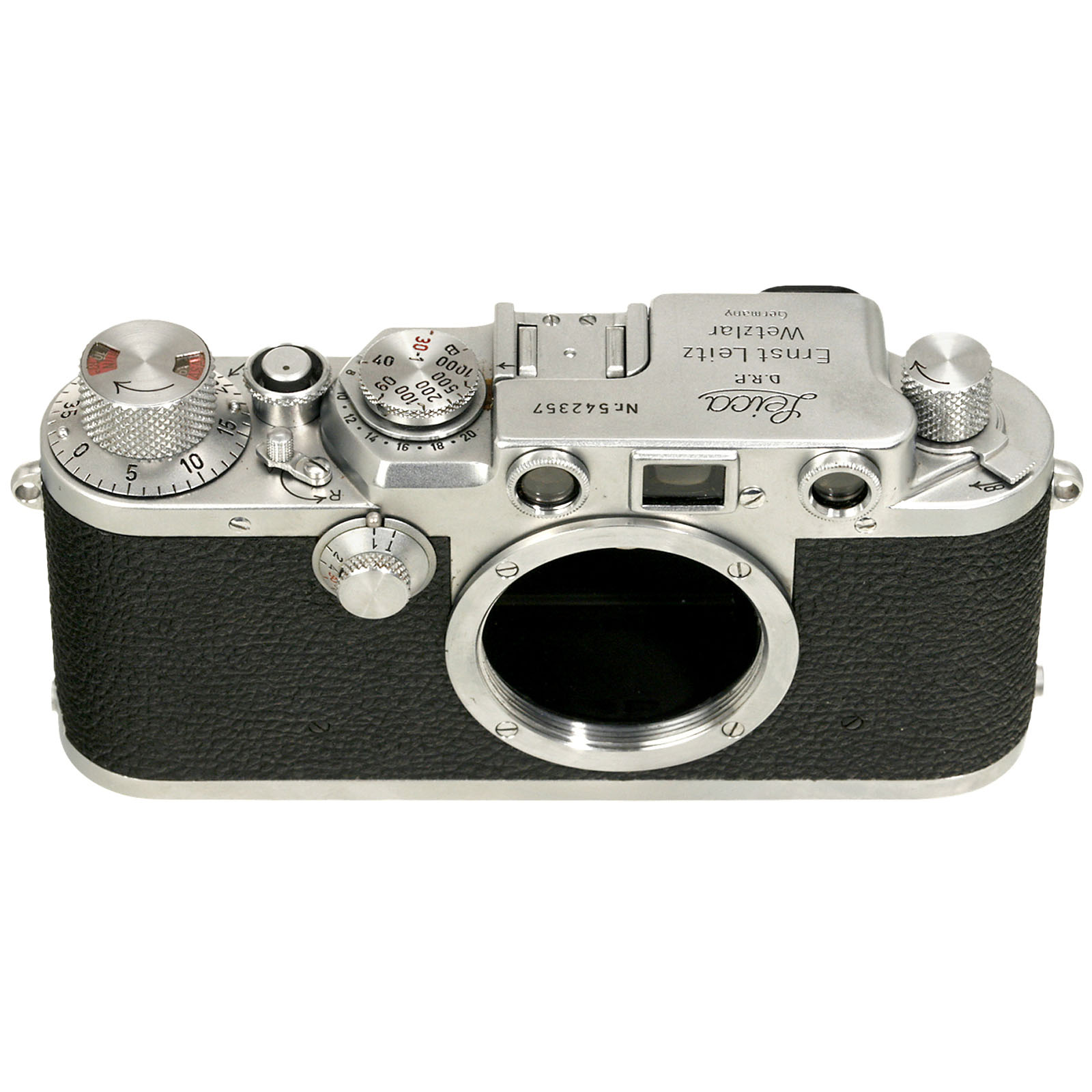 Leitz, Wetzlar. No. 542357, black-dial synchronization.