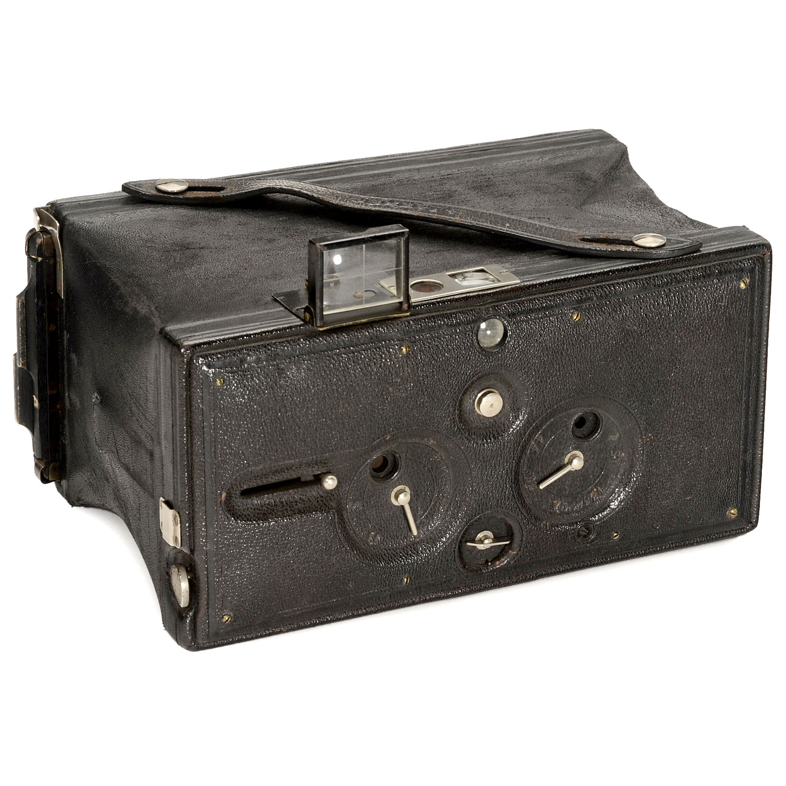 Hugo Svenson & Co., Göteborg, Kamerafabrik (later Hasselblad manufacturer), Sweden. Very rare stereo folding camera of interesting design. The entire body is composed of rectangular bellows with 2 large plates, plate size 7,5 x 16 cm, body no. 8304, six-speed guillotine shutter (working), 5 diaphragm settings, with double cassette. Very attractive exhibition piece and desirable collector's item.