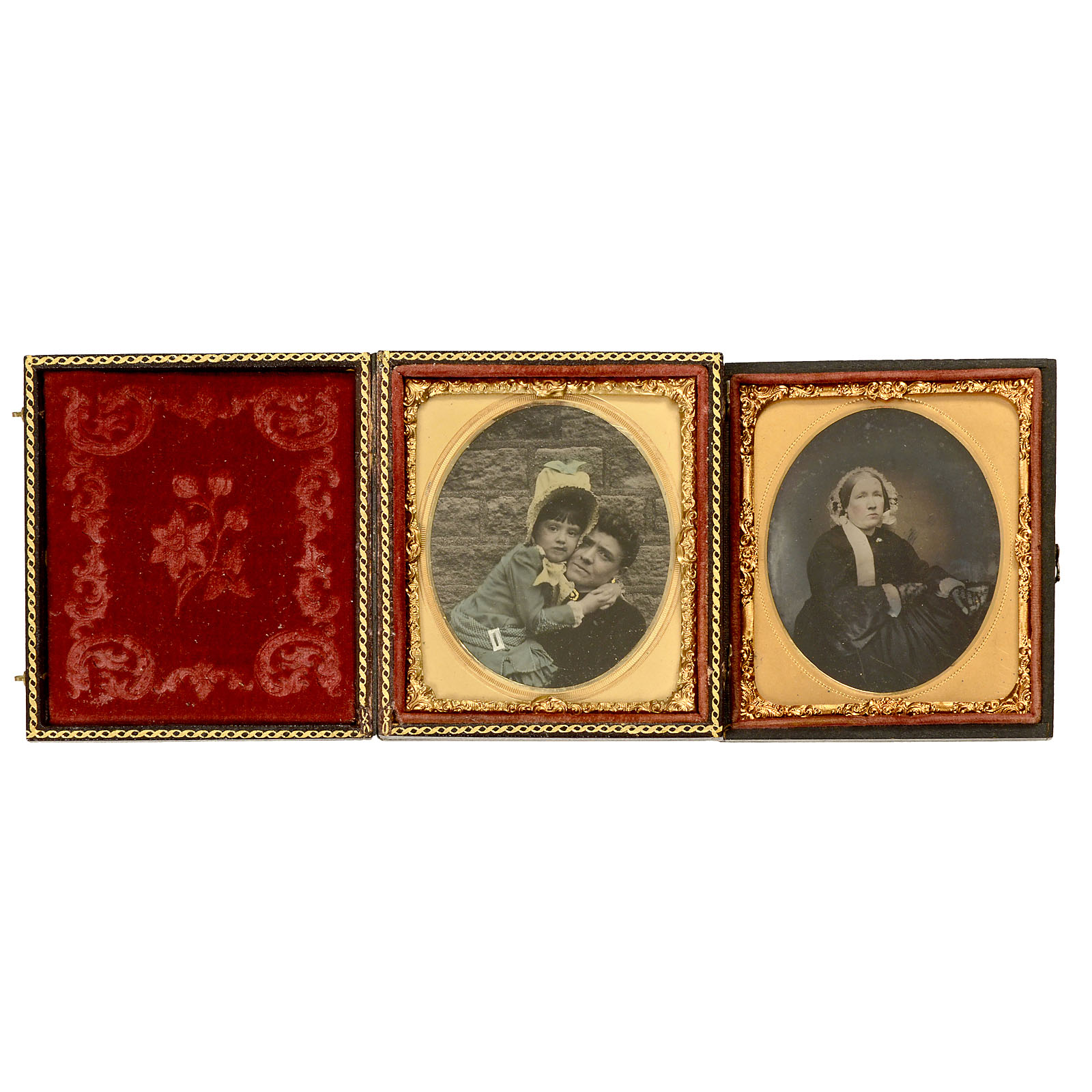 Anonymous, 2 x 1/6 plate, hand-tinted, brass passe-partout, with cases.