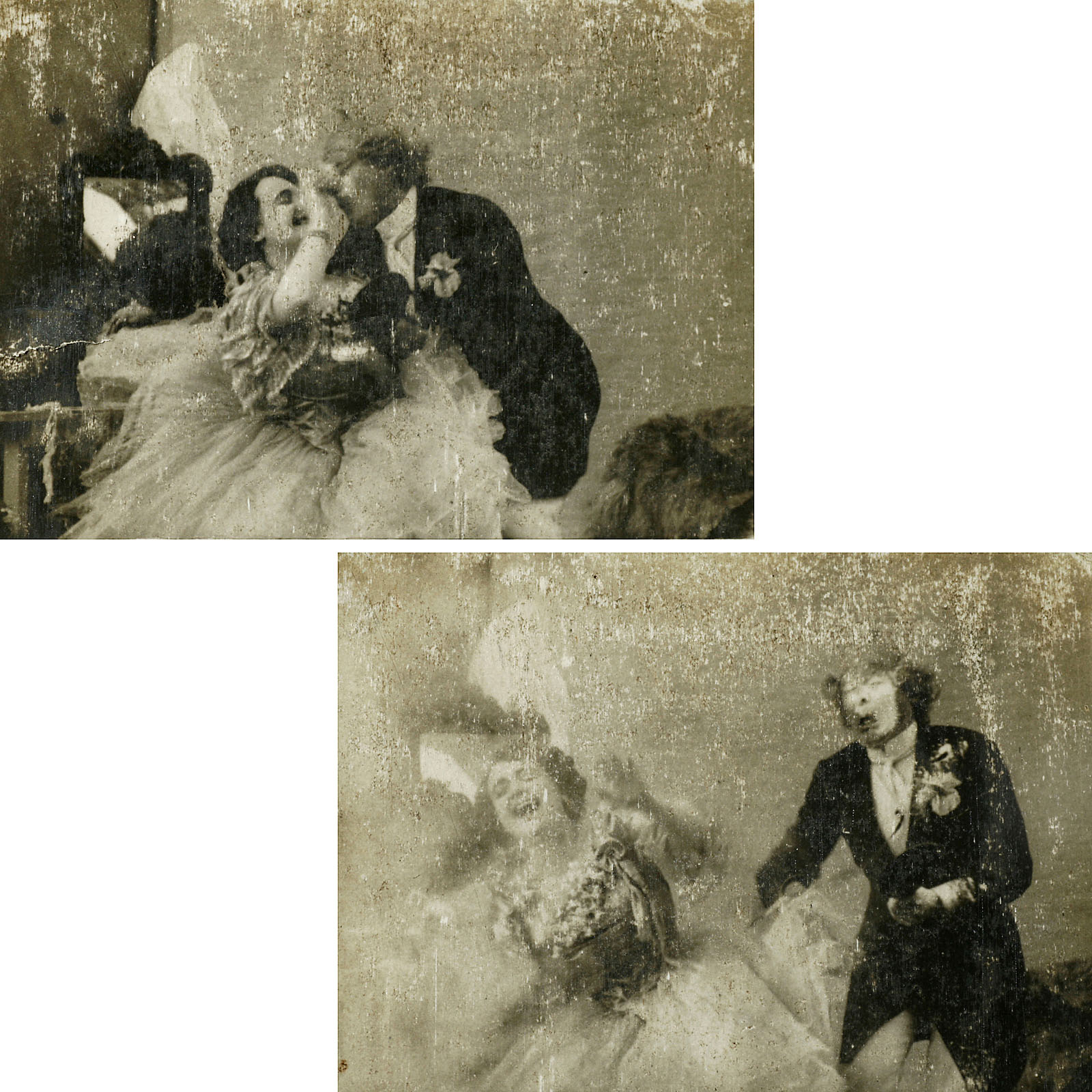 Exceptionally rare table model of early Berlin production, with wonderful decorative art-nouveau motif on both sides. Probably from the very first and only prototype series as nearly nowhere else known. With original Mutoscope reel "Serie: 10488" by the "Deutsche Muto. u. Bio. GmbH, Berlin". Marquee sign probably later. – A fascinating rare collector's item and museum piece!