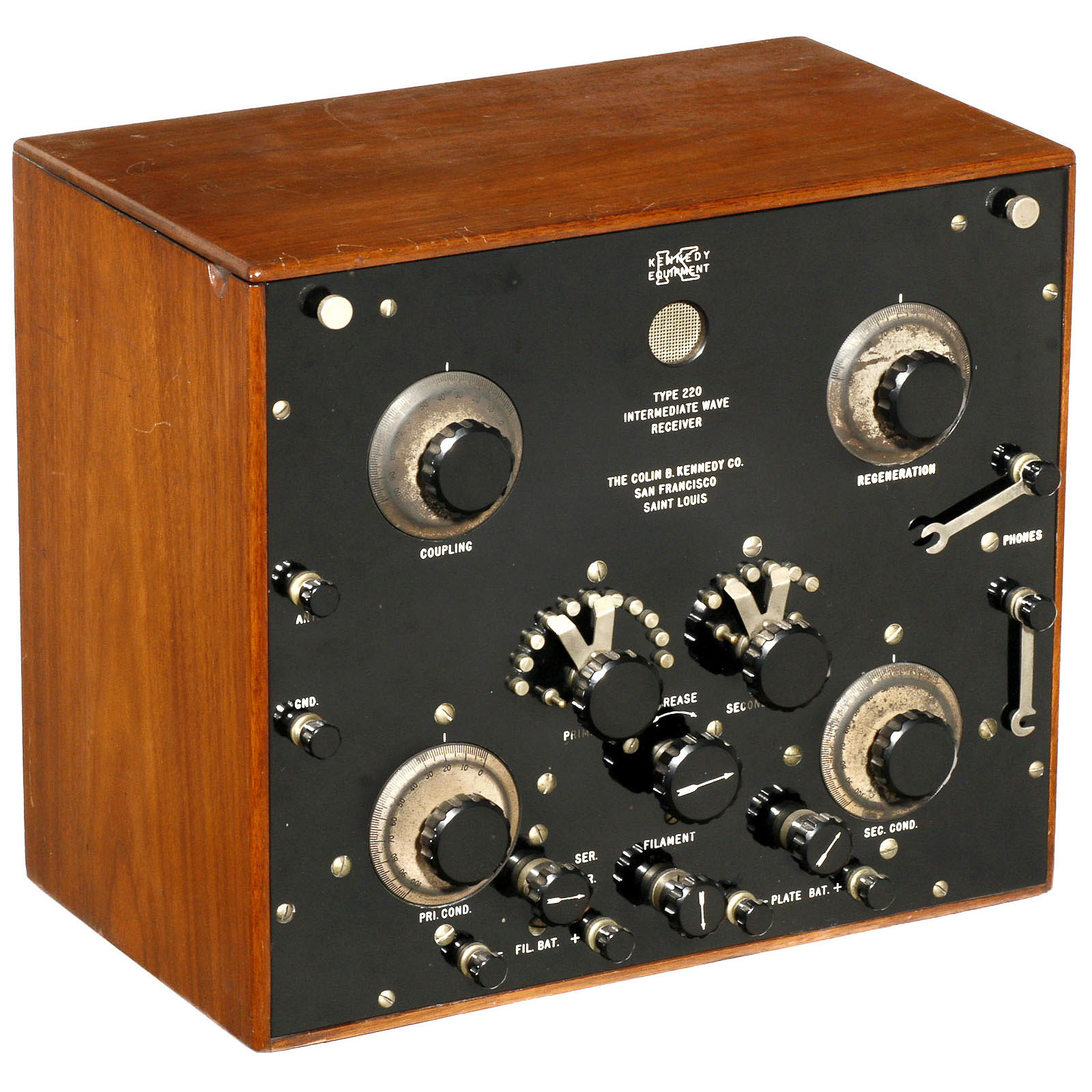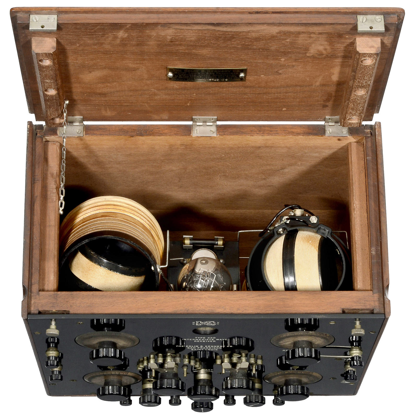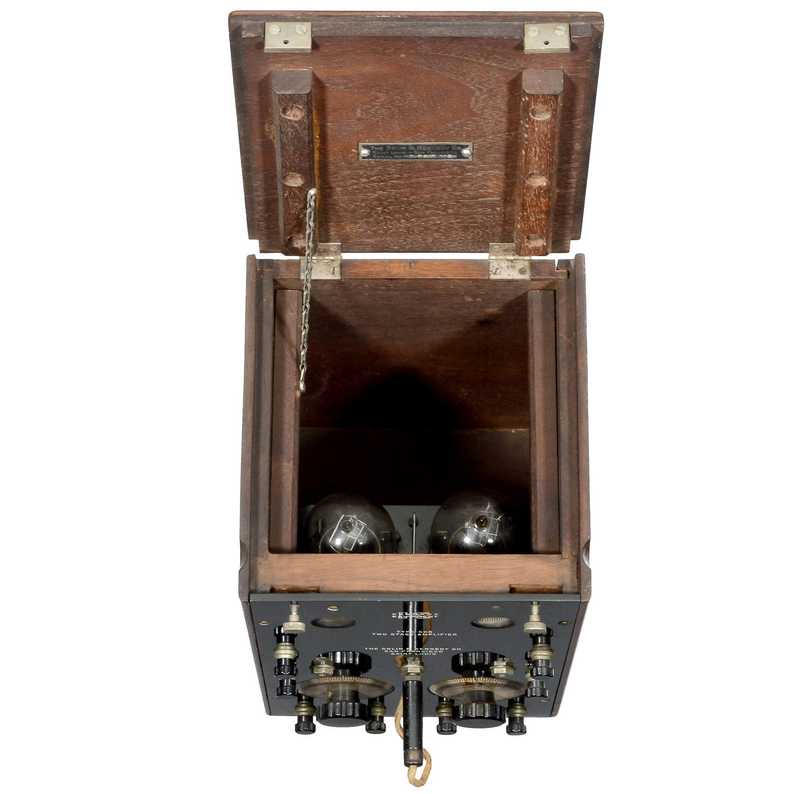 The Collin B. Kennedy Company, San Francisco. 2-part combination. 1) 1-valve regenerative receiver. – And: 2) 2-valve AF amplifier.