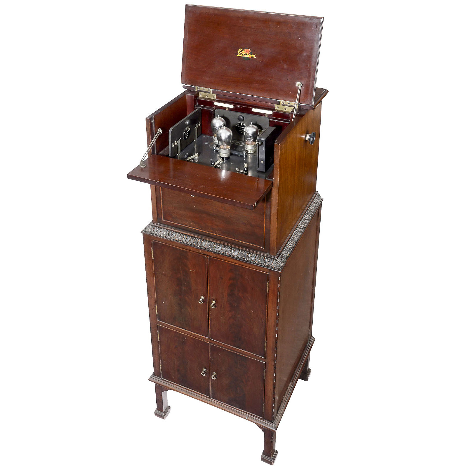England, 3-valve receiver, inbuilt horn-type loudspeaker, with additional plug-in coils, very good condition.