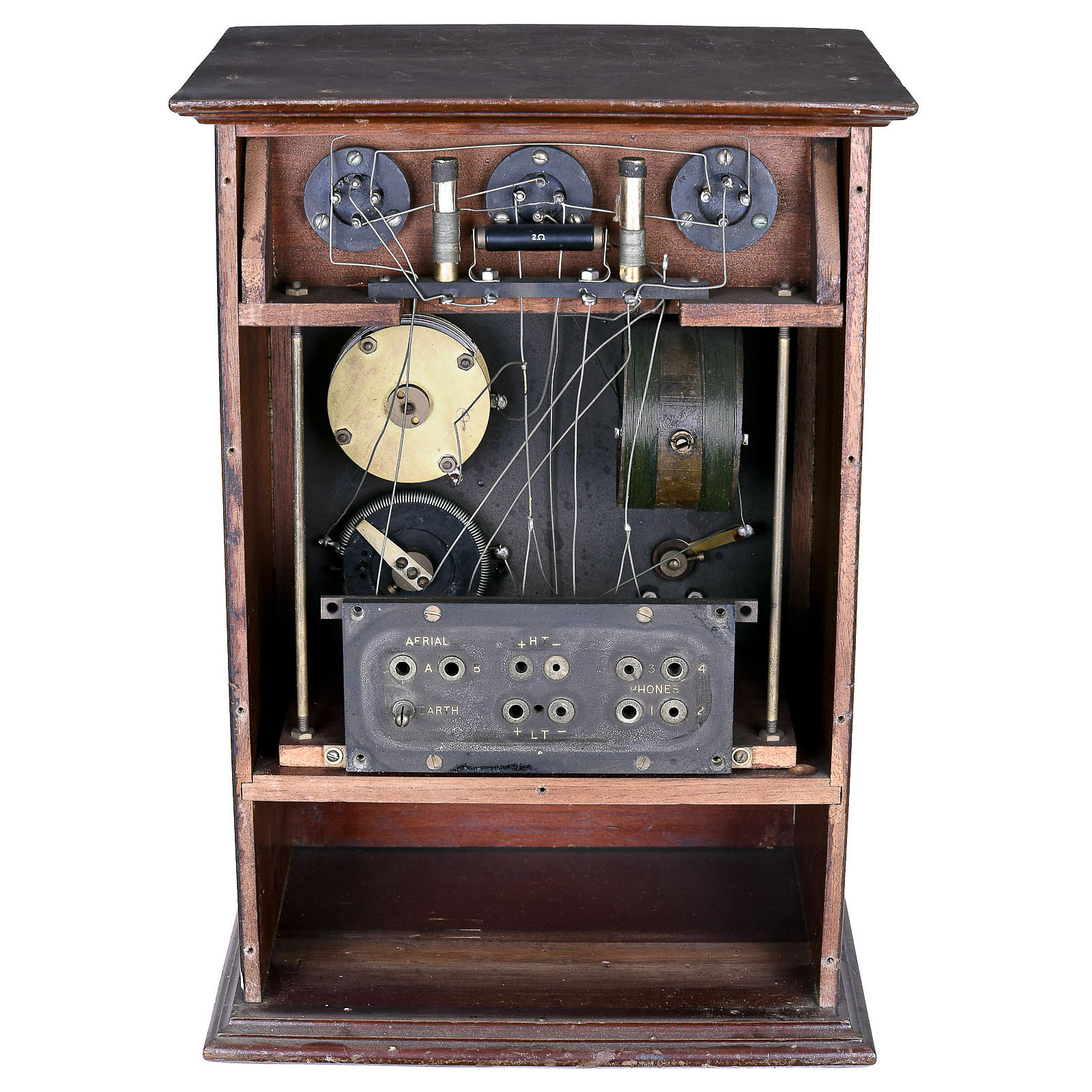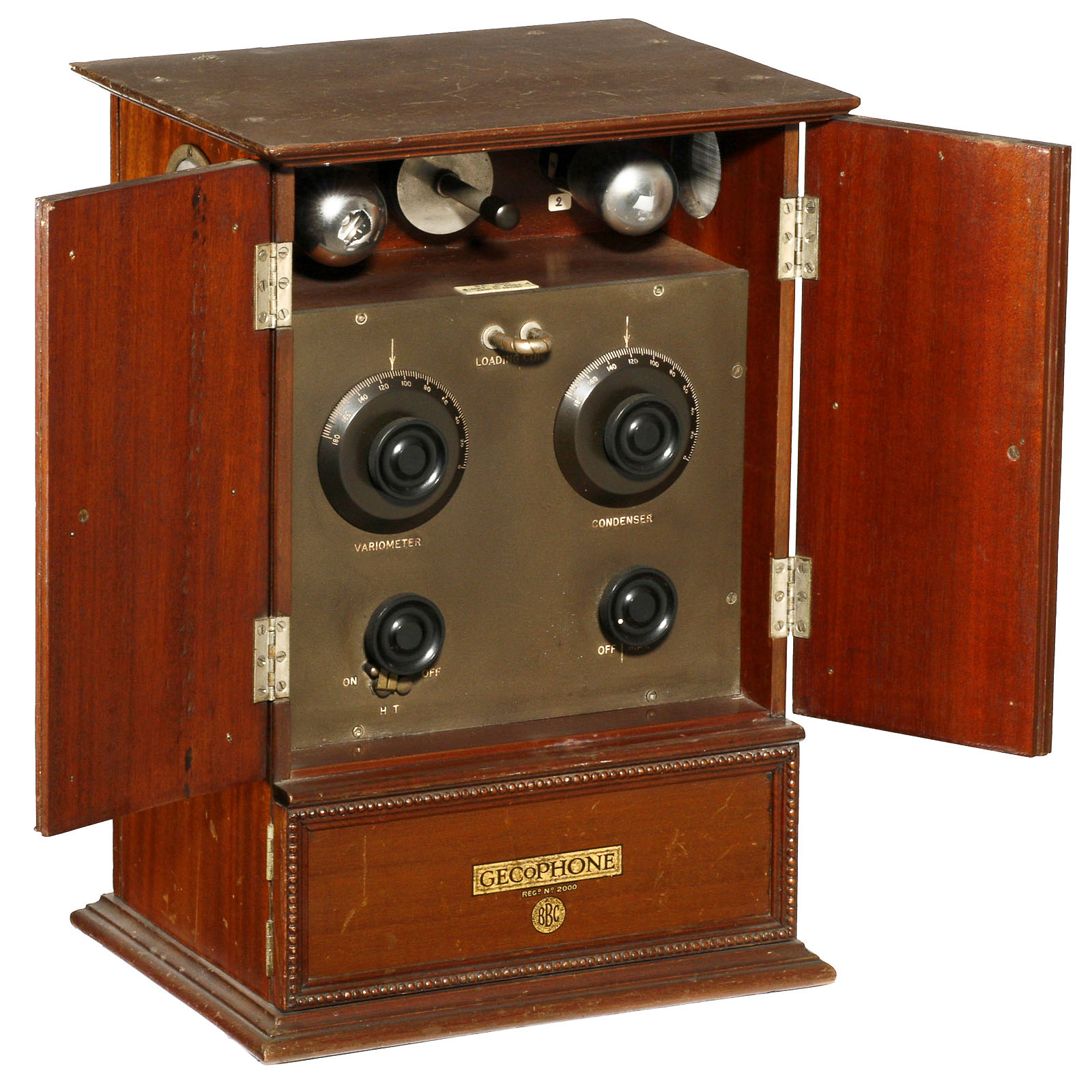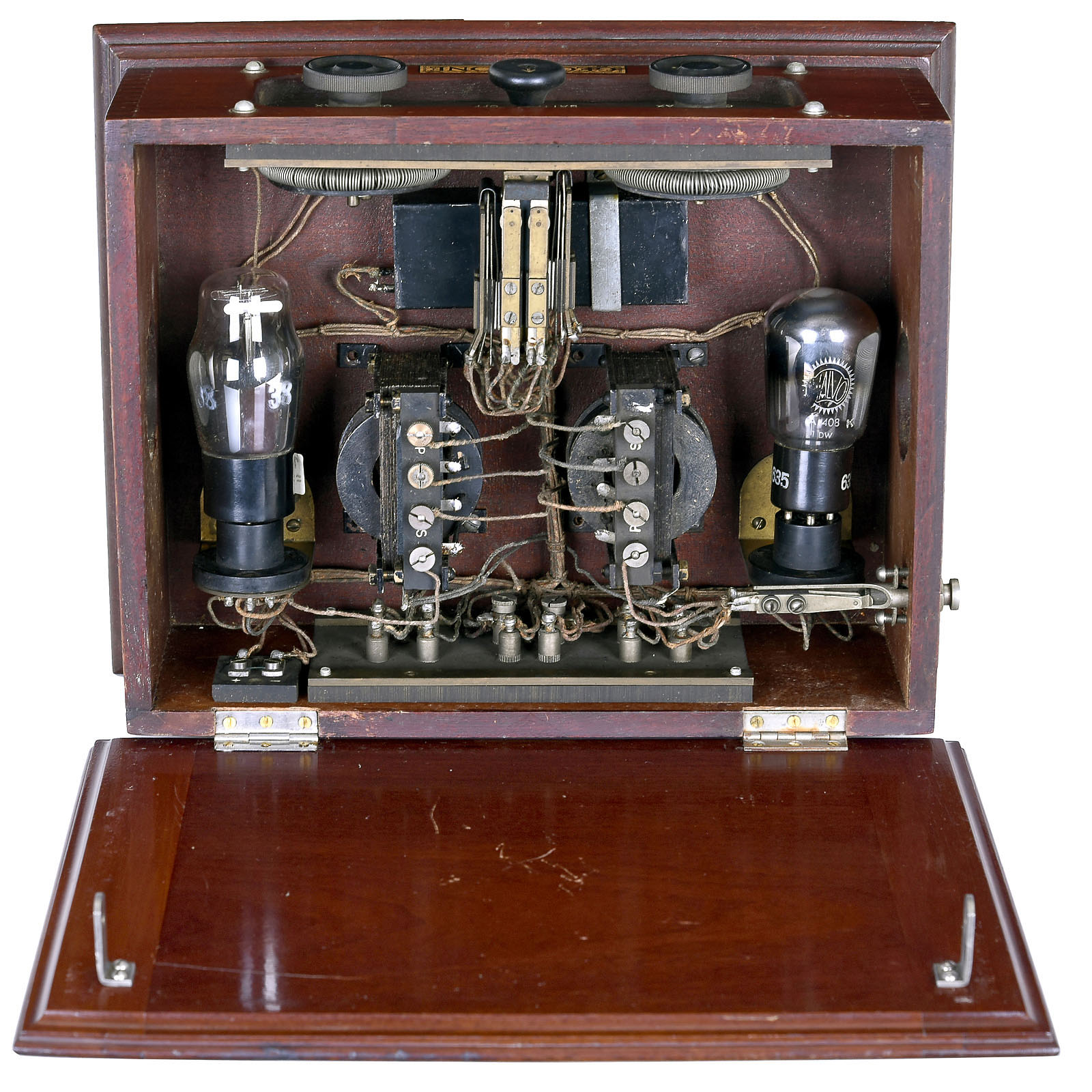 1) 2-valve cabinet receiver, Type BC 2001, with BBC stamp. – And: 2) 2-valve amplifier, Type S.L. 2580. – Hard to find in this combination.