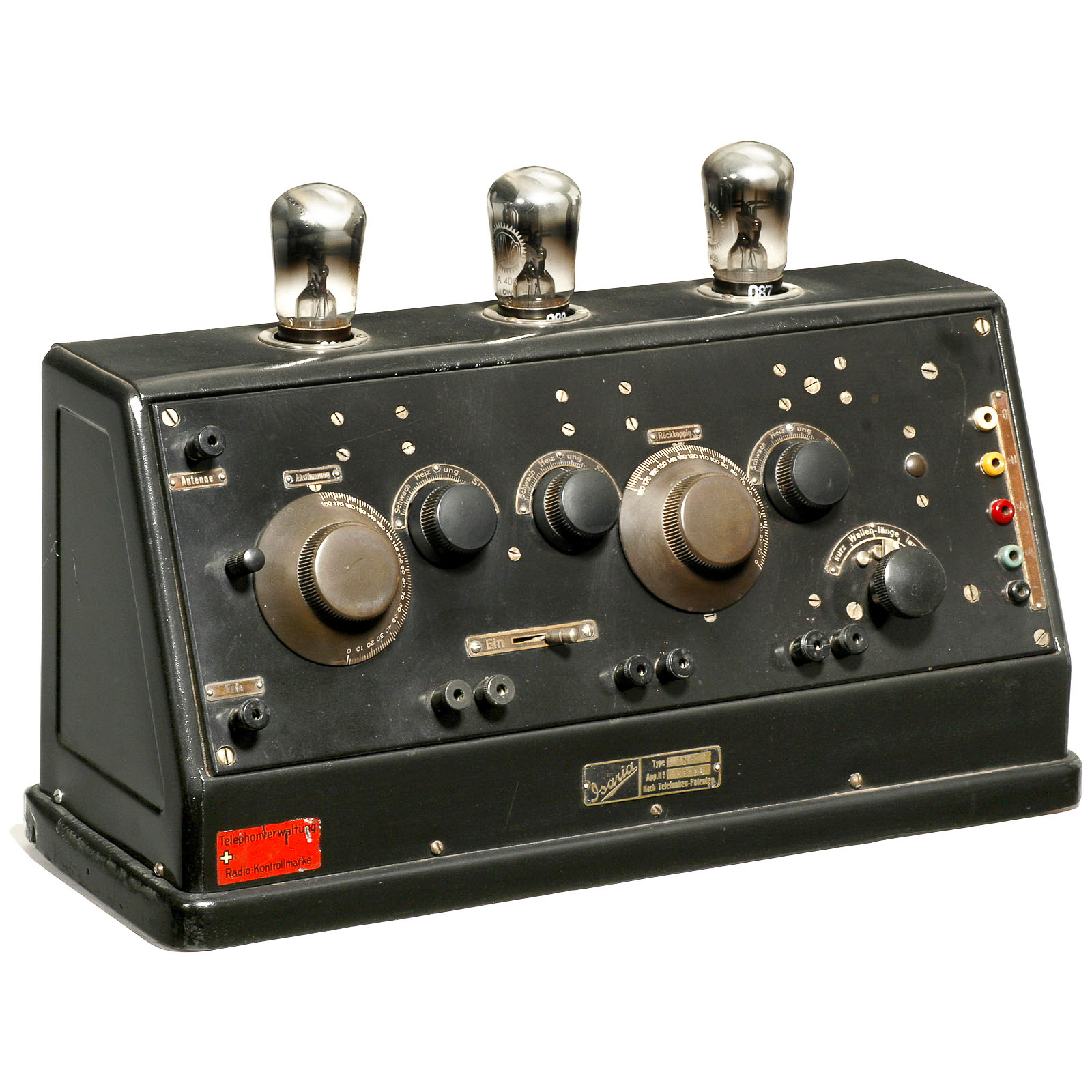 By Isaria Zählerwerke, Munich. 3-valve battery receiver, no. 35158, a Telefunken licensed product. Very rare!