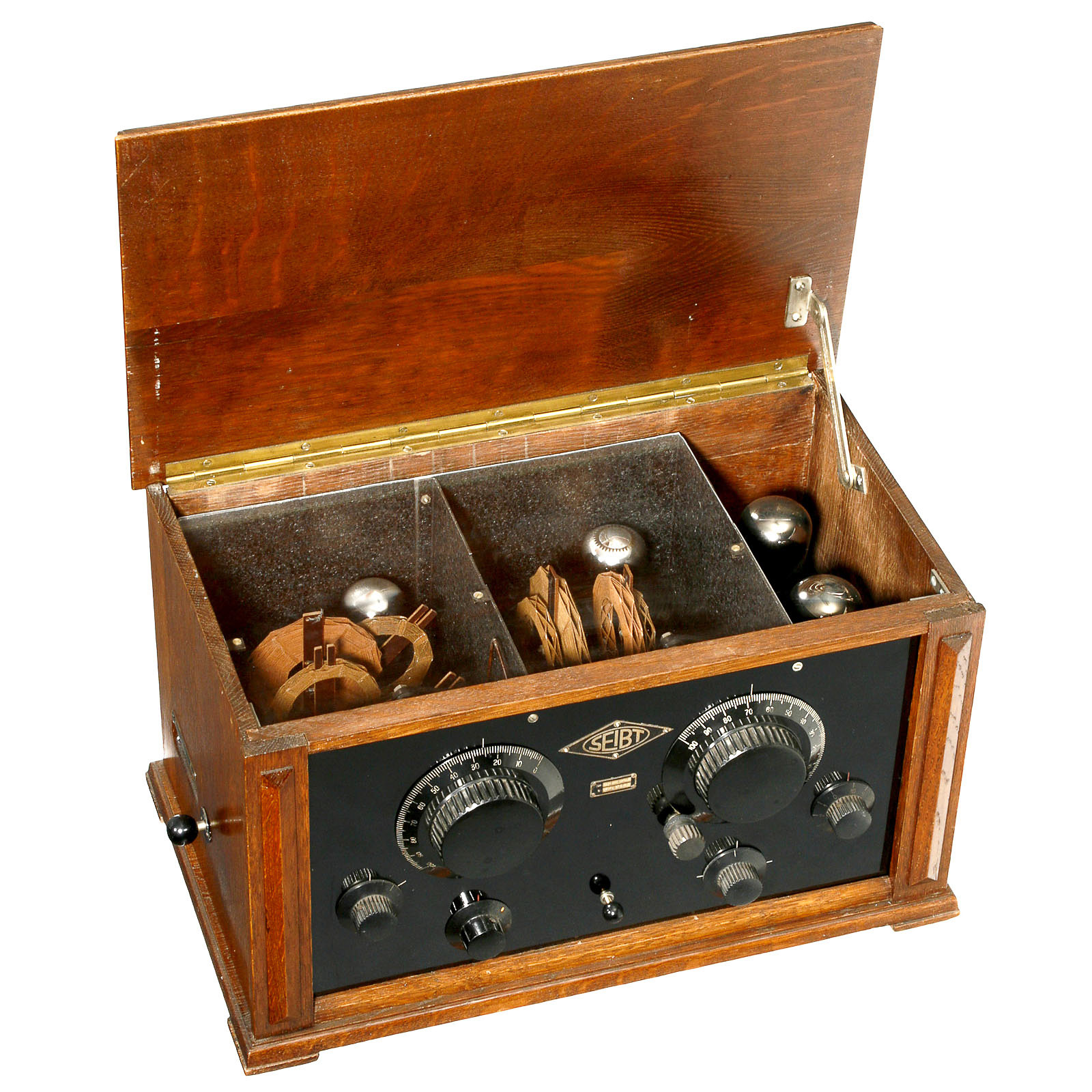 By Dr. Georg Seibt, Berlin. 4-valve battery receiver, MW + LW, acrylic inside cover (added).