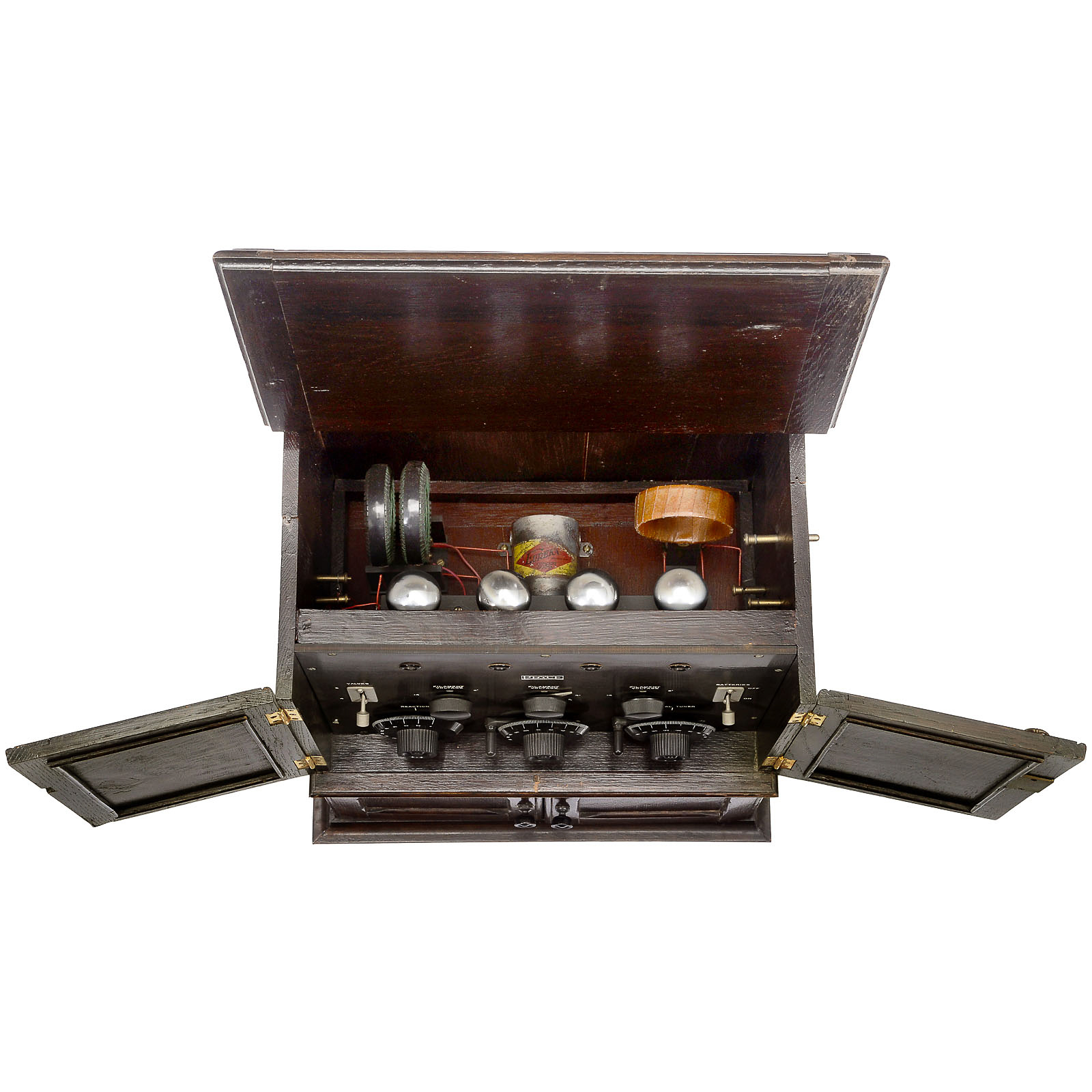 4 valves, cabinet-style case, 4 doors, opening lid, very rare.