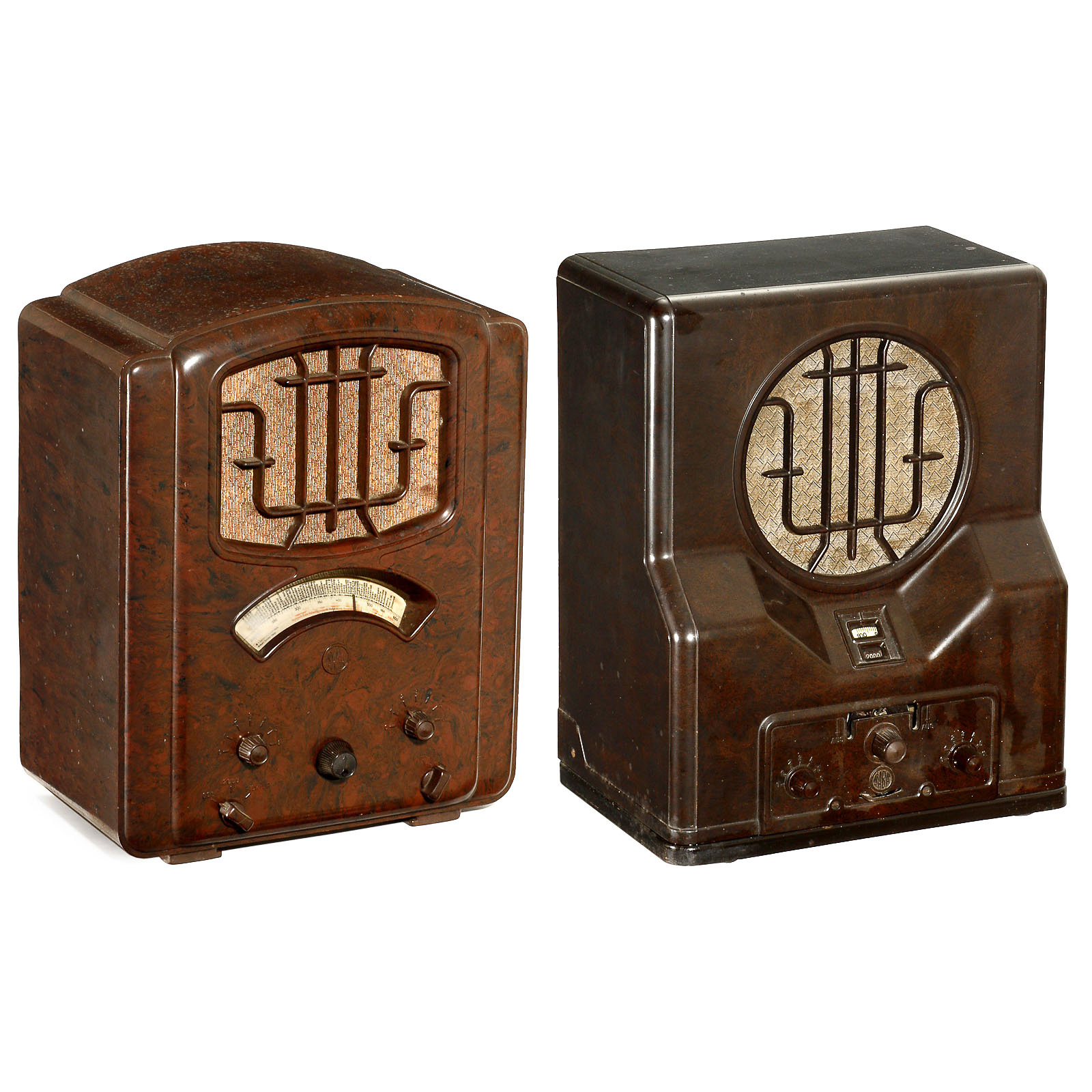 1) Type 32 GL, for direct current, acrylic backdoor, 3 valves, LW + MW. – And: 2) Type 310WL, 4 valves, LW + MW.