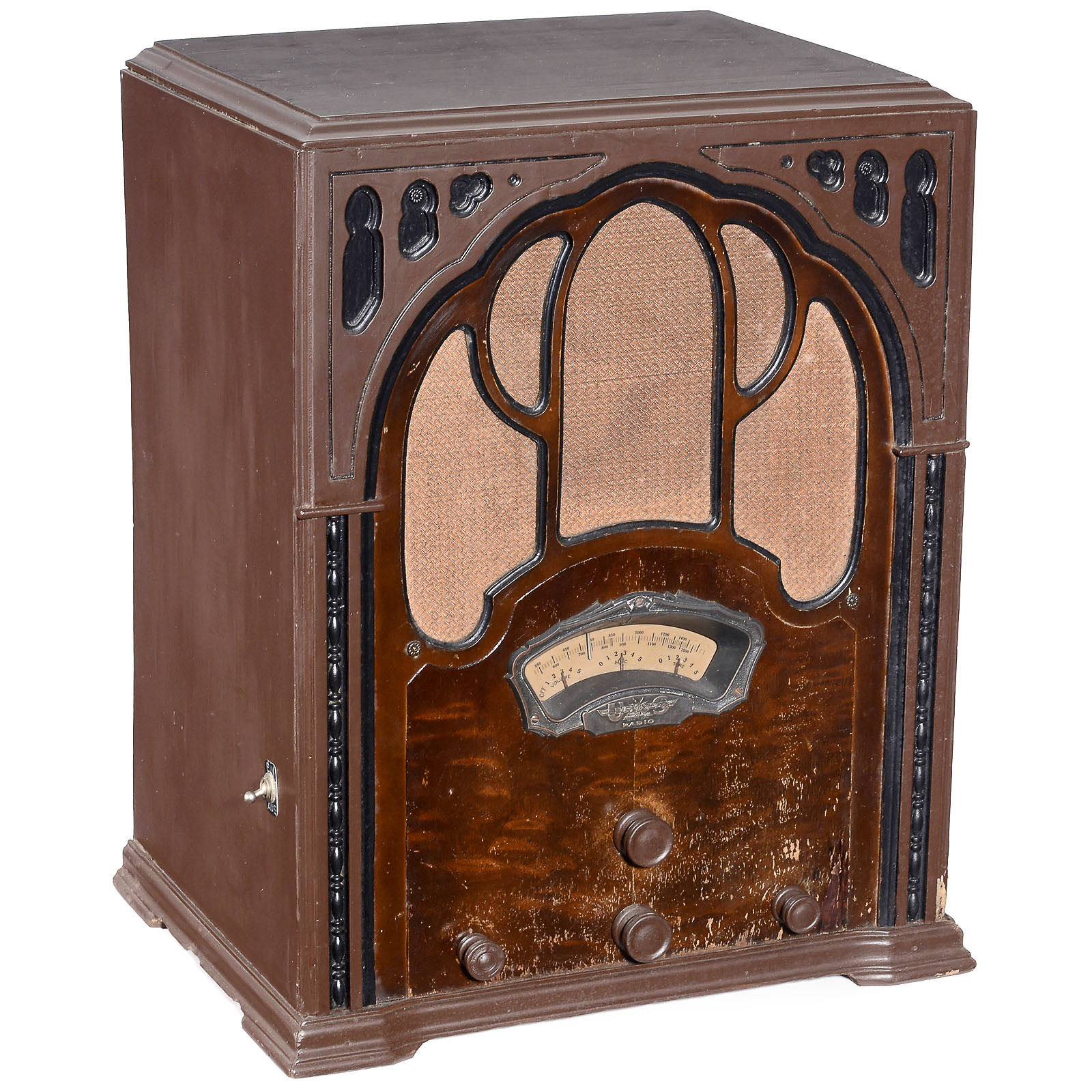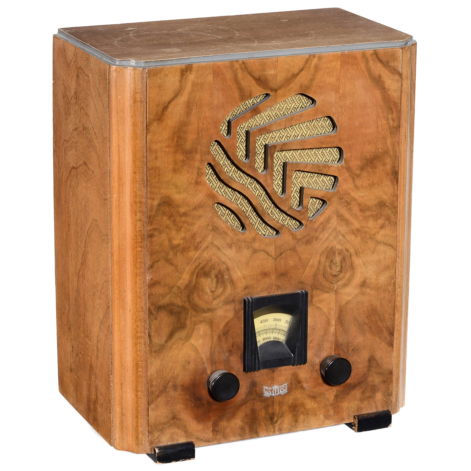 1) Mediator (Philips), Switzerland, 1936, type: M26. – 2) Apex, USA, 1932, type 9AY, 8 valves, repainted case. – 3) Astra, Switzerland, 1931, 4 valves, LW + MW. – And: 4) Jura, Switzerland, 1938, type: 36A.