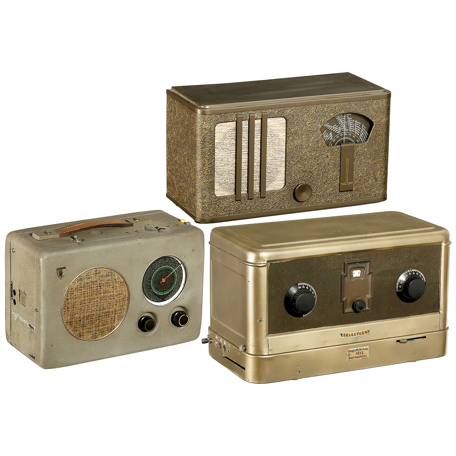 1) Radione R2, Austria, c. 1940, 6-valve battery receiver, 3 wave ranges. – 2) Paillard 39, Switzerland, c. 1939, 5-valve mains receiver, MW. – And: 3) Gruwela Selectus 4, Germany, c. 1930.