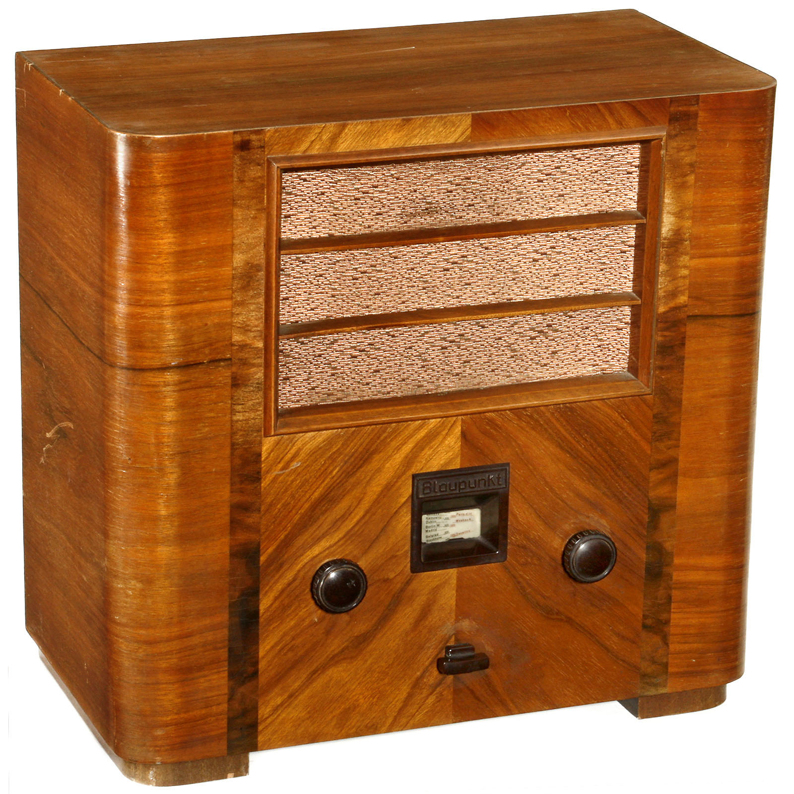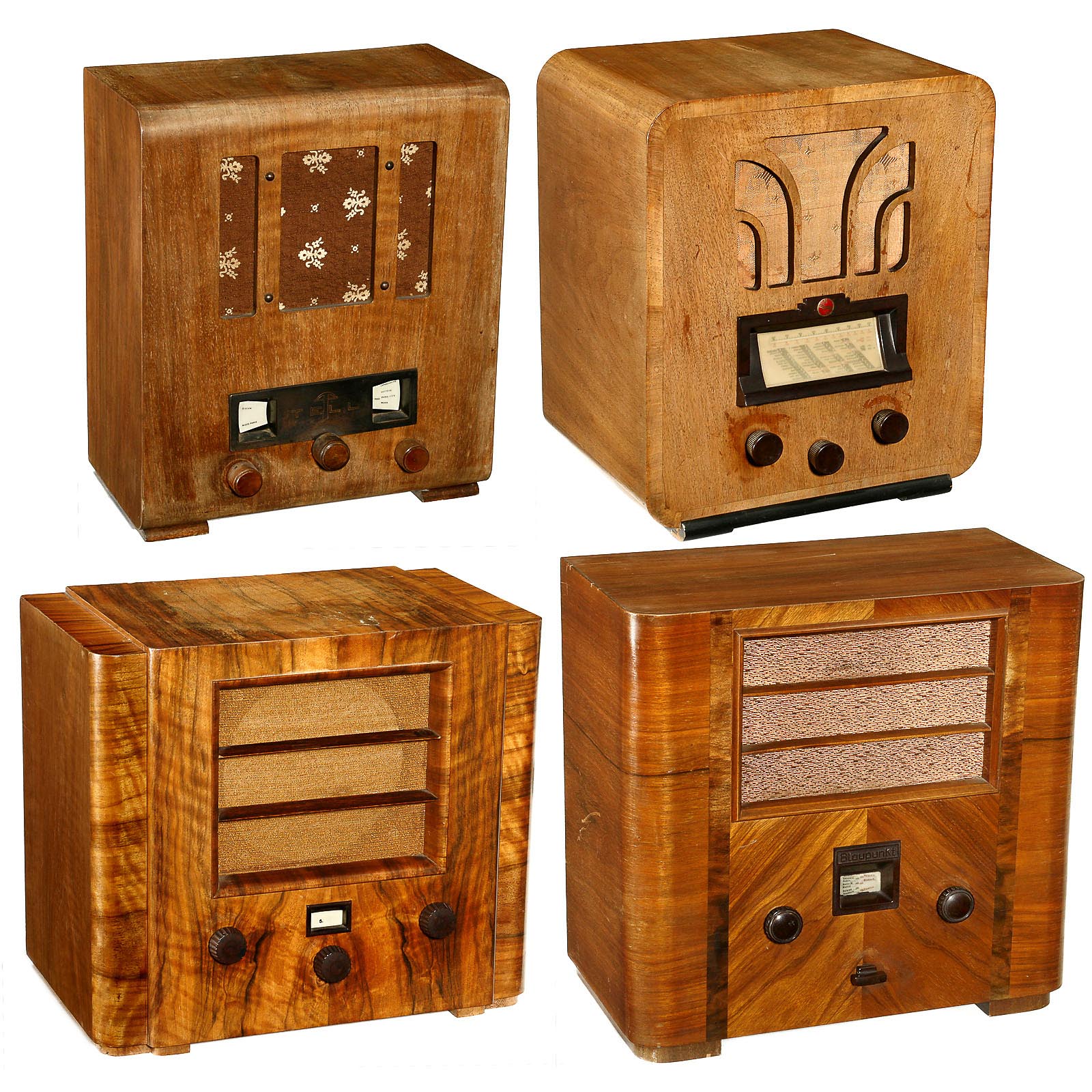 1) Blaupunkt LW 4000, 1932. Mains-operated. – 2) Philips Philette 837A, 1936. – 3) Autophon T 2 S, 1936. Swiss wire receiver. – And: 4) Paillard Tell, St. Croix, Switzerland, 1932.