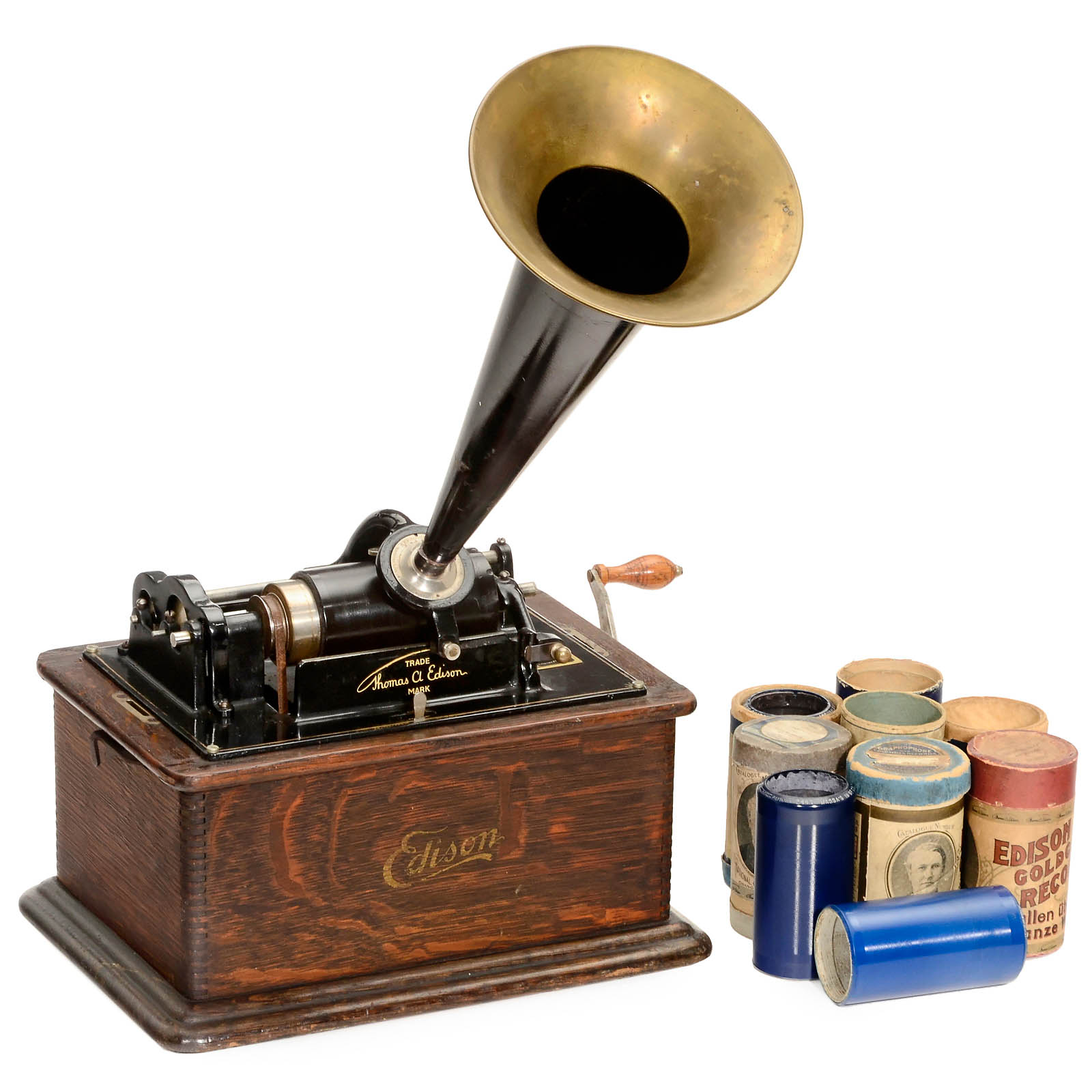 For 2-minute cylinders, serial no. 677961, model C soundbox, working! With one 2-minute cylinder and six 4-minute cylinders.