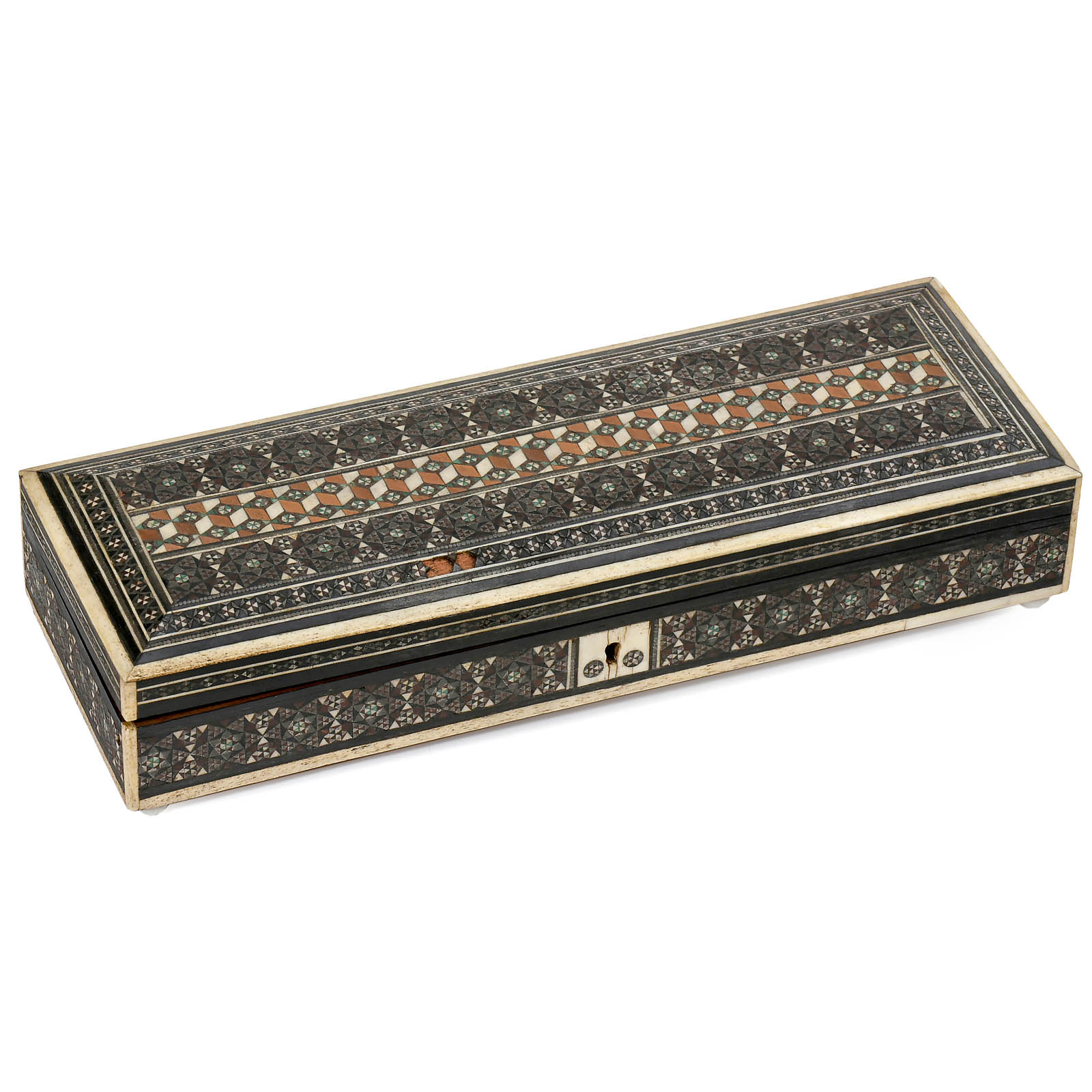 Playing "The Cuckoo" in three variations, with tune-sheet, in mosaic case, wd. 11 in. (28 cm). – A beautifully arranged contemporary musical box.