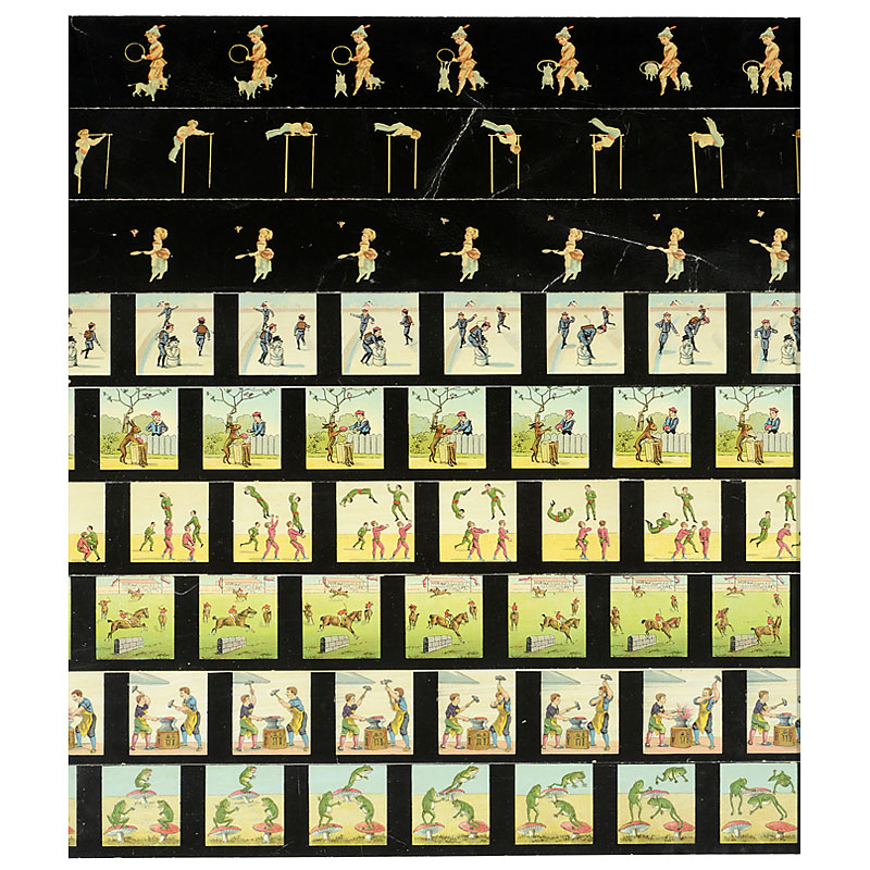 Ernst Plank, Nürnberg. Rare hand-turned "Wheel-of-Life" based on design by Emile Reynaud, Paris. With 9 excellent chromolithographed picture