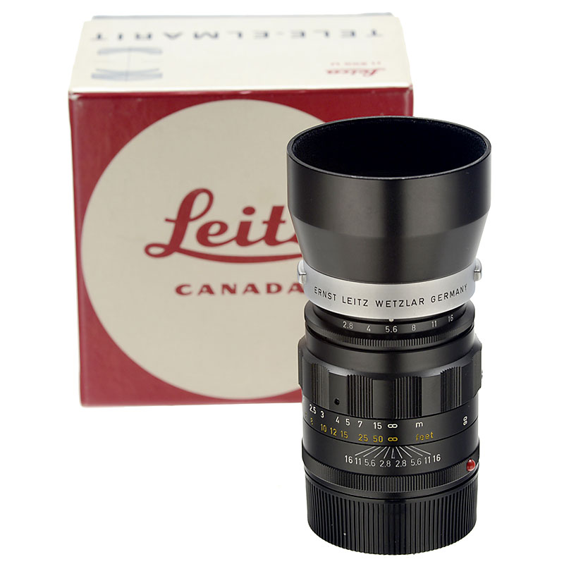 Leitz, Canada No. 2257900, five-element design, black. With lens hood 12575, 2 caps and original box. Like new!
