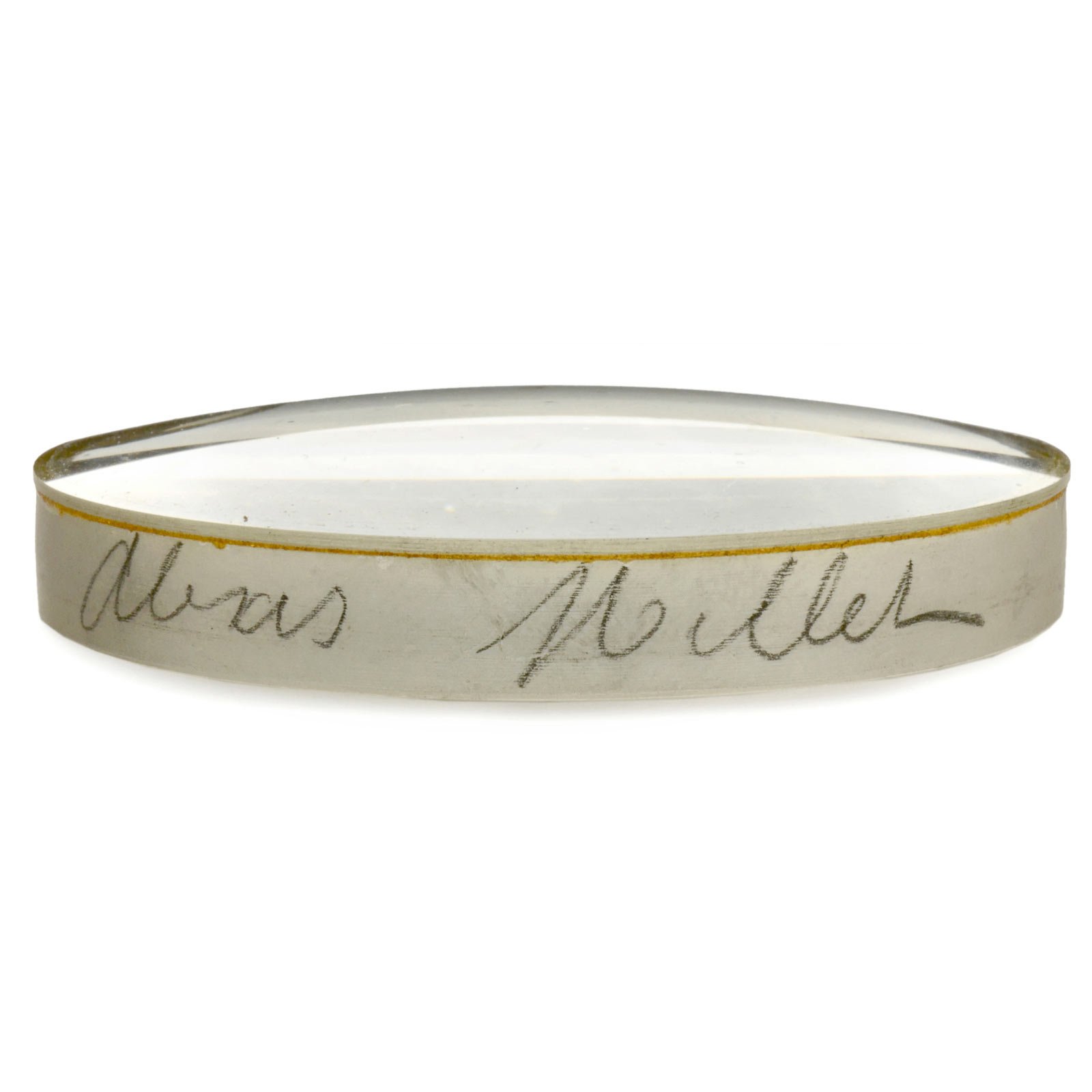 Alexis Millet, 160 rue St. Martin, Paris. Daguerreotype lens, approx. 30 cm focal length, conical construction, for washer stops, lens rim signed "Millet", height 3 ½ in., Ø 3 in., connecting ring Ø 4 in. – Historical lens by a small French manufacturer.