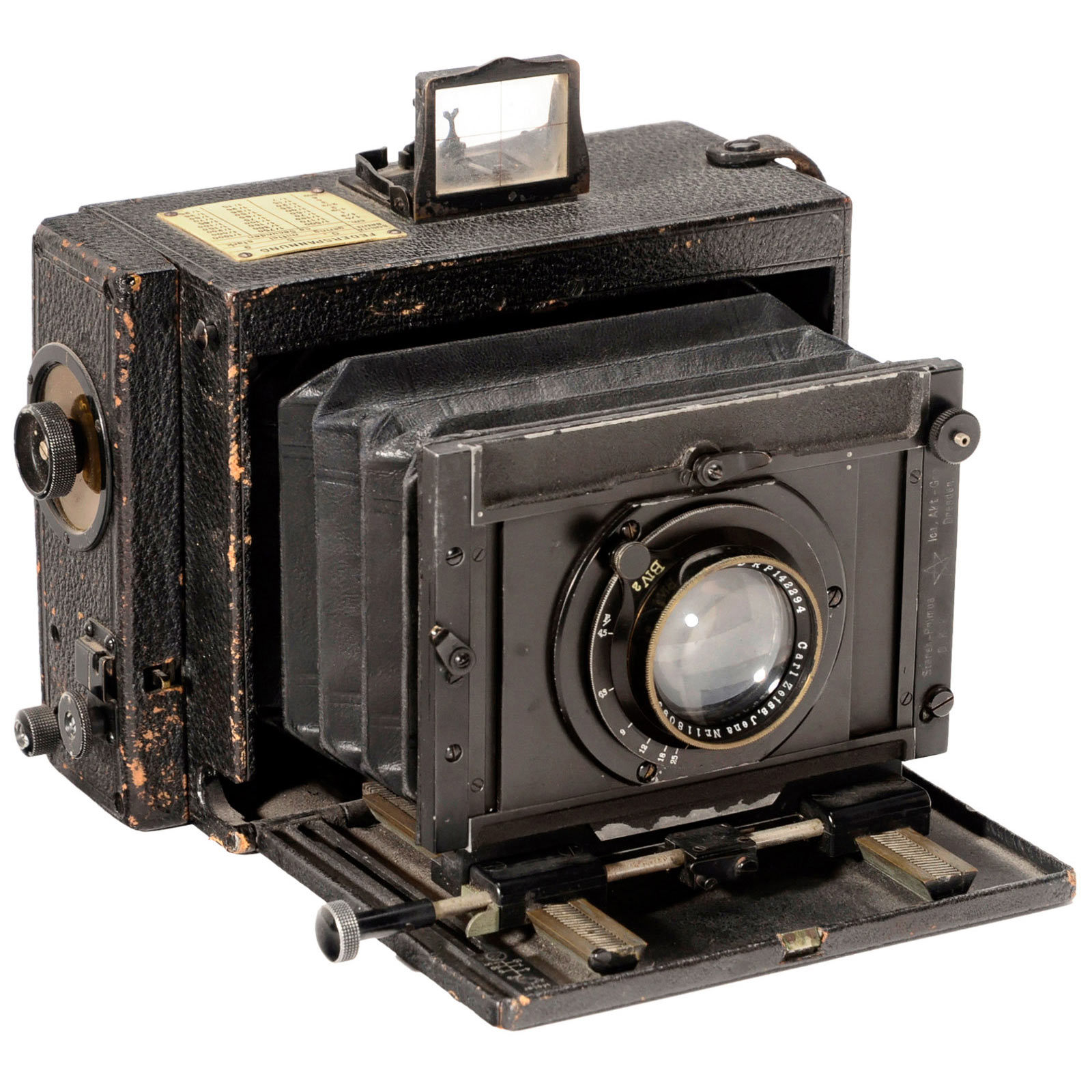 Ica, Dresden. Mono version of Stereo-Palmos (No. 255), plate size 9 x 12 cm, Tessar 4,5/15 cm (no. 142294), focal plane shutter 1/1.000 sec., stuck, focusing screen back.
