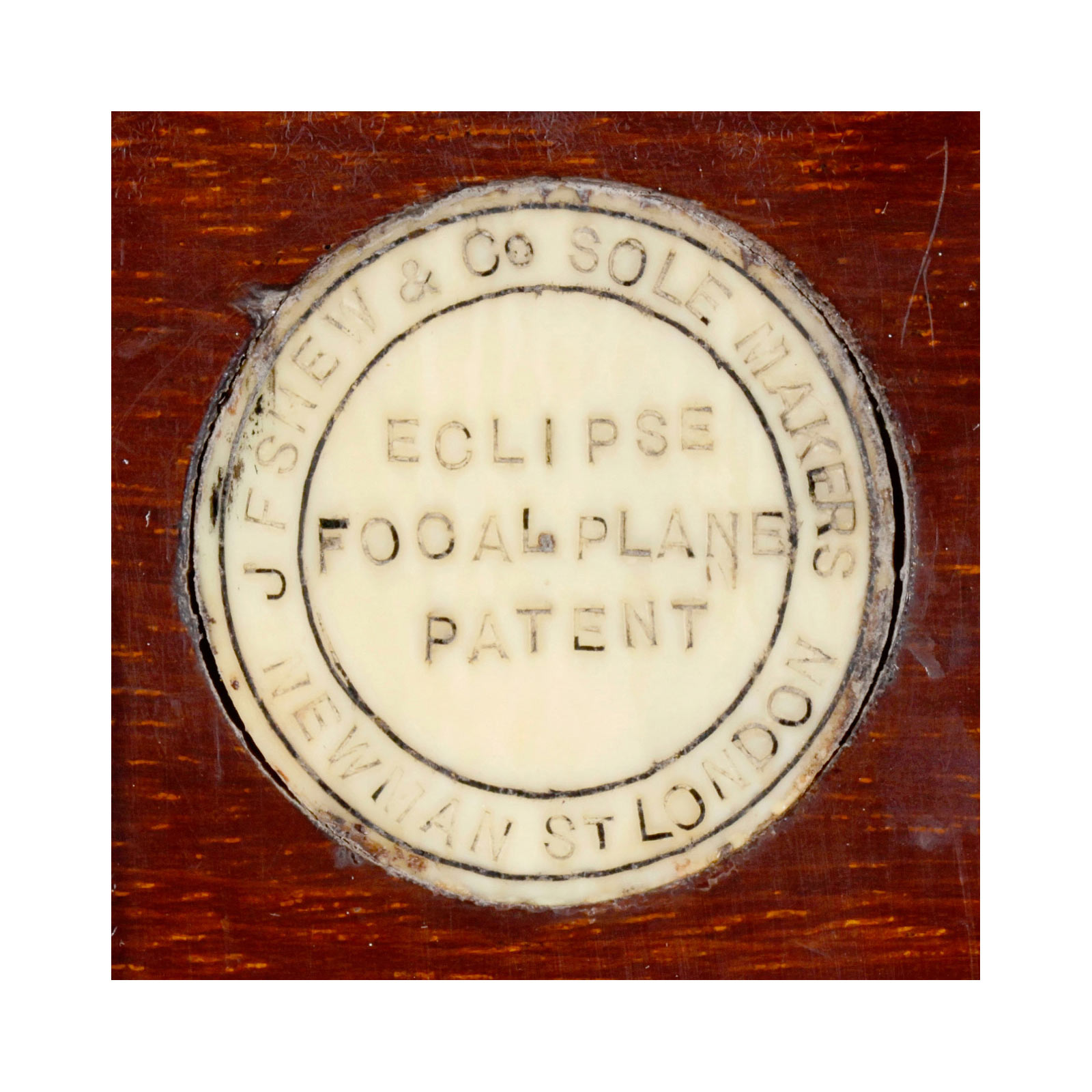 J.F. Shew & Co., London. Large size 6 ¼ x 8 ¼ in., focal plane shutter (working, but sluggish), mahogany body with brass fittings, brass lens "9 ½ in. Double Anastigmat F:7,7", Goerz patent. Without viewfinder and focusing screen back. – Extremely rare camera with this plate size!