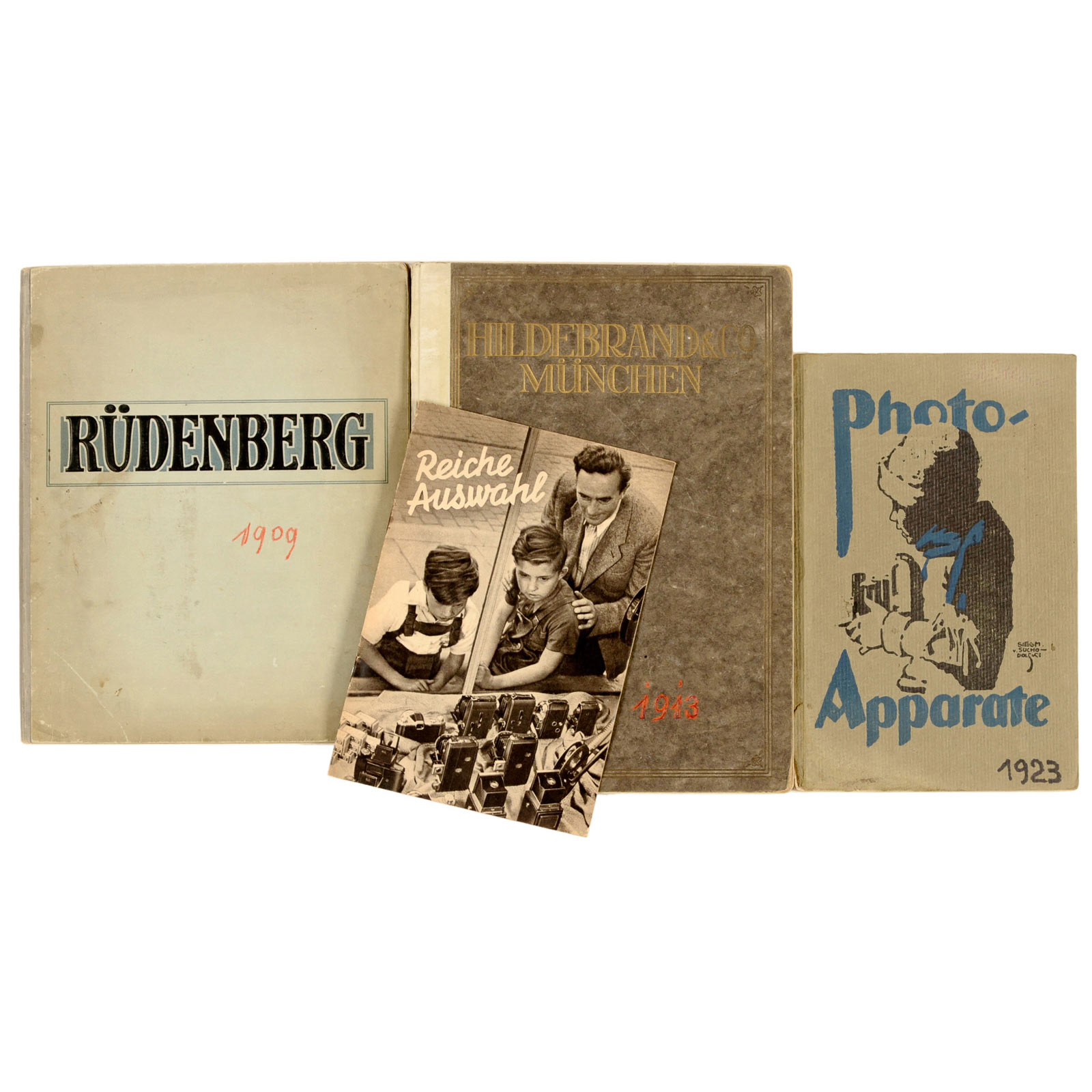 1) Rüdenberg Jun., Hanover and Vienna, 1909, main catalogue with 116 pages, size 8 ¼ x 10 1/5 in. – 2) Hildebrand & Co., Munich, 1913, main catalogue with 136 pages, size 8 ¼ x 11 2/5 in. – In addition: List "Photo-Apparate", 1923, 74 pages, size 6 ¼ x 9 ½ in. and small brochure "Kameras aus Dresden", c. 1955.
