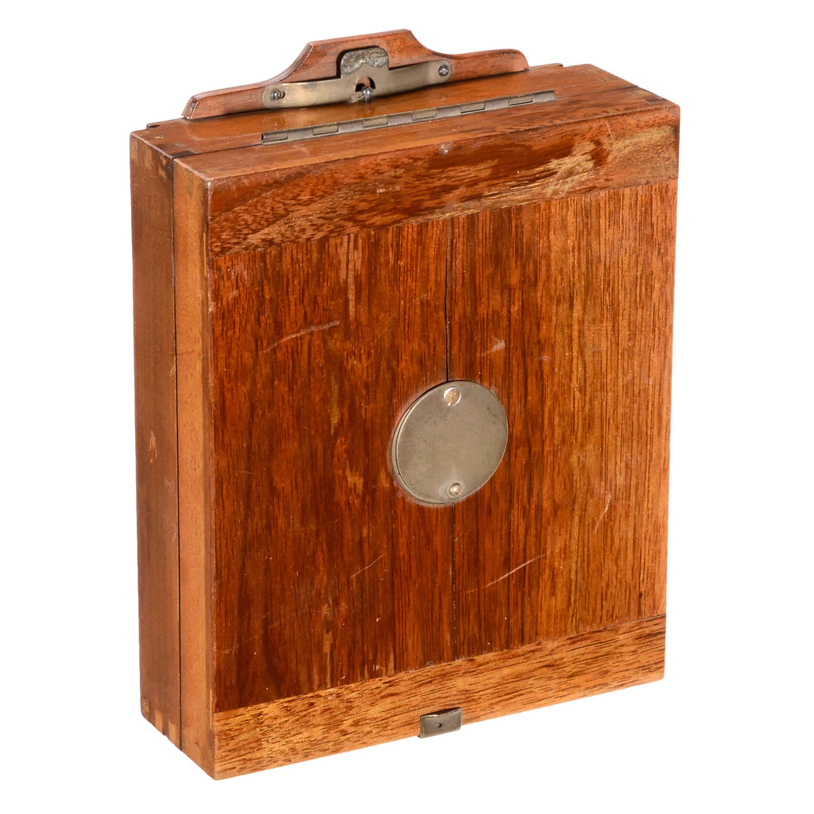 Unmarked, rollfilm gauge approx. 130 mm, photograph format 85 x 130 mm, slide-in size 120 mm.