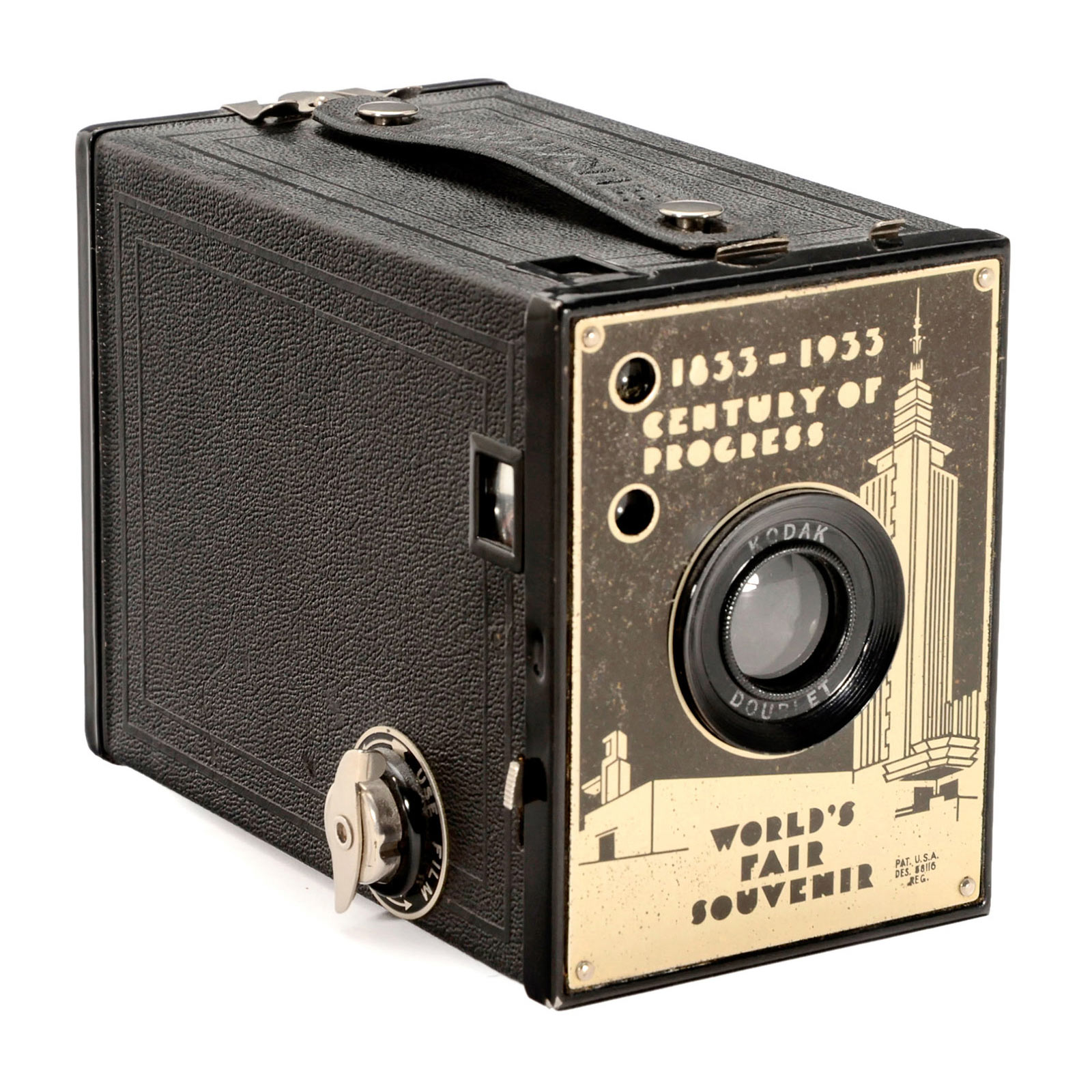 Eastman Kodak, USA. No. 2 Brownie Special, 1933, camera with front label: "1833–1933 Century of Progress – World's Fair Souvenir", World's Fair Chicago.