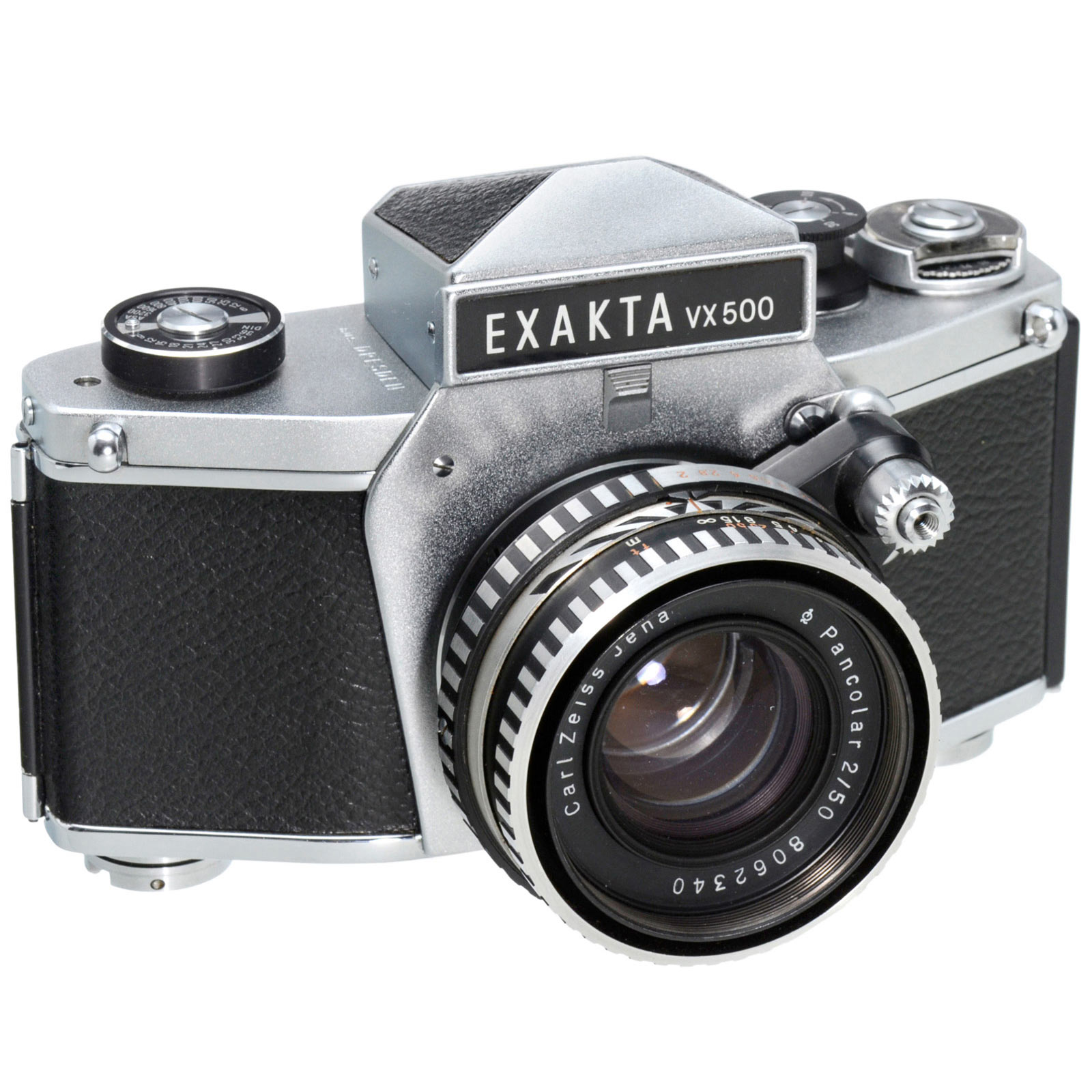 Ihagee, Dresden. No. 1546688, version with chrome-plated border and film cutter (see VX1000), Pancolar 2/50 mm, excellent condition!