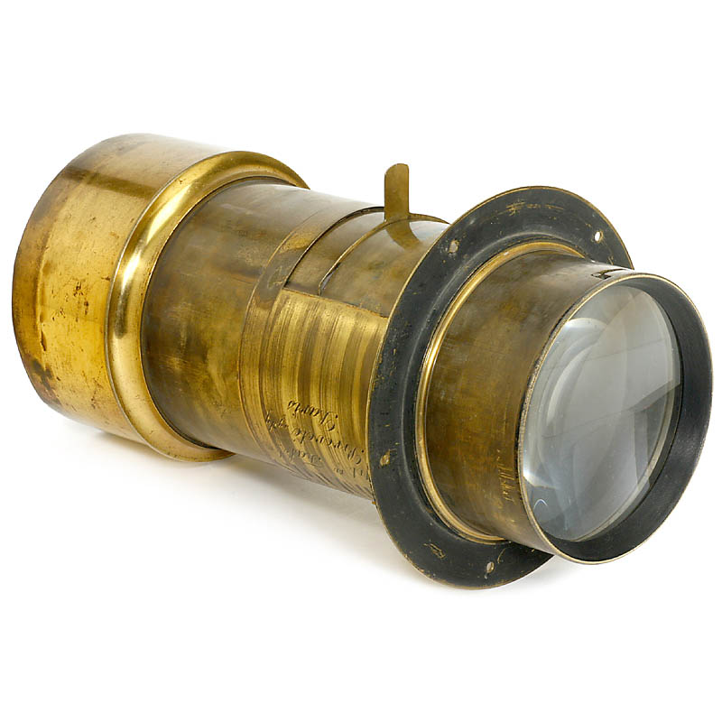 Hermagis,巴黎,焦距大约60厘米,遮光罩36厘米,拧紧环直径15.5厘米,齿动装置,后镜头和Bayonet装置可移动,有插入式光圈,和镜头盖。