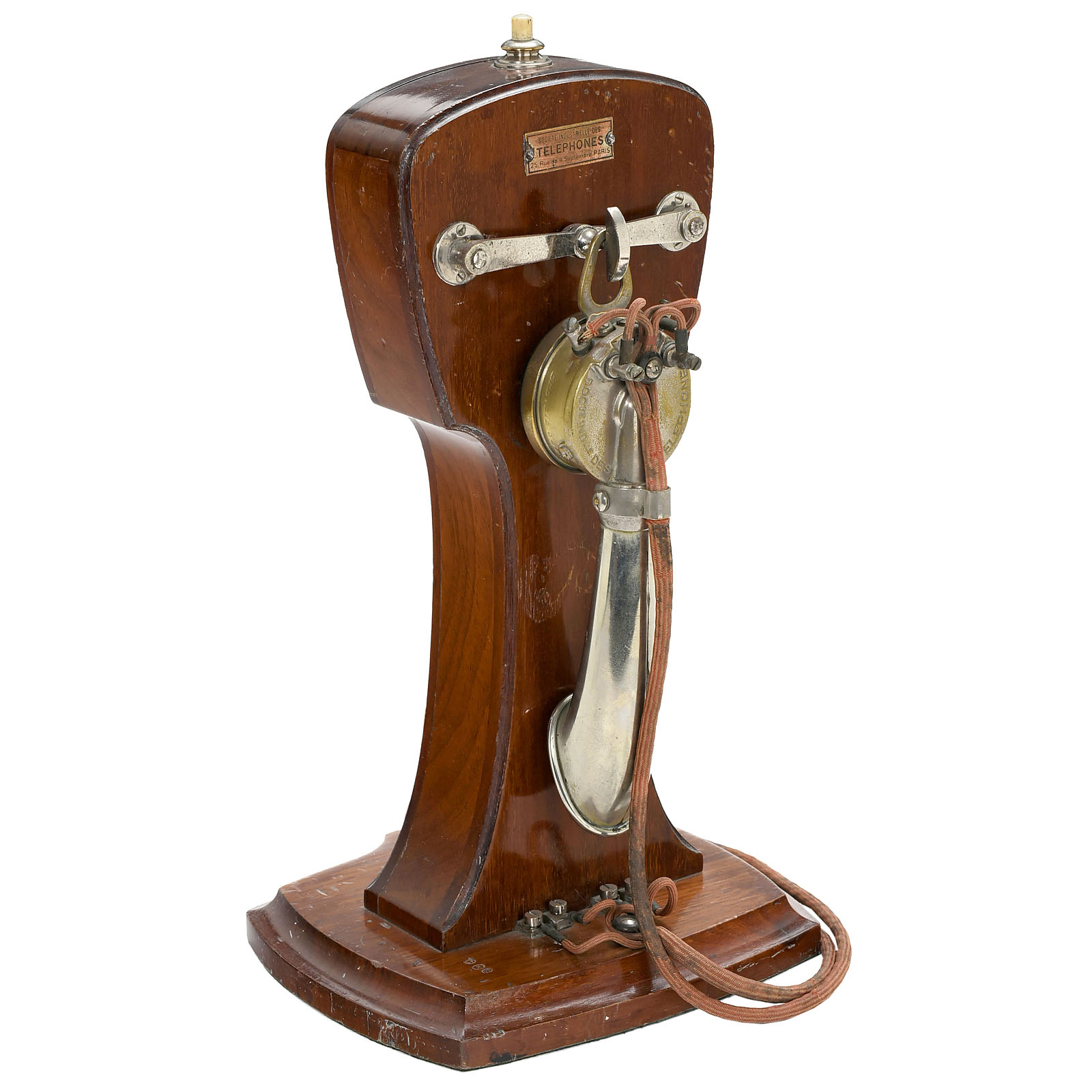 Manufacturer: Société Industrielle des Téléphones, Paris, marked on brass plaque, earphone and on the handset, without wires to the earphone, height 14 ½ in.