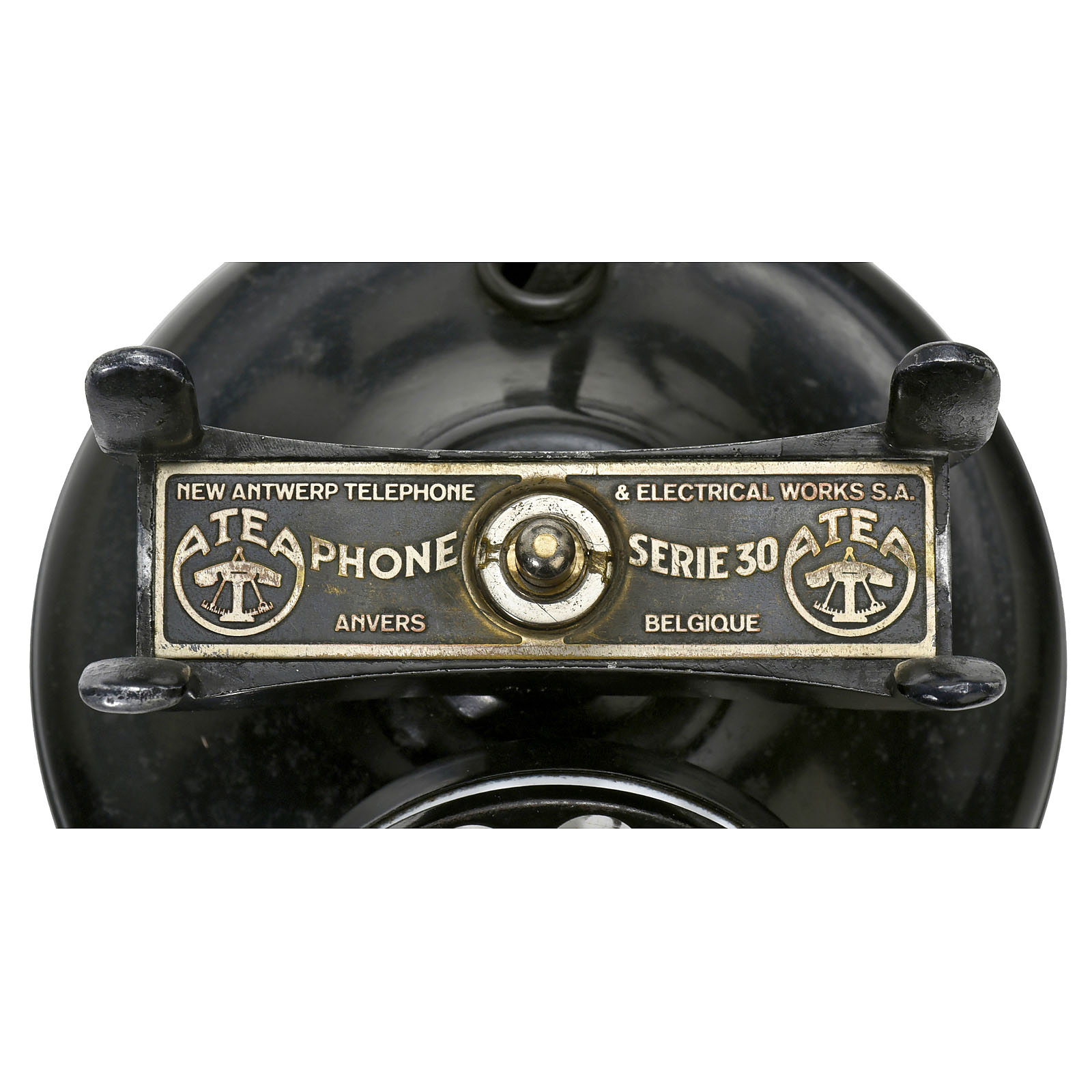 Manufacturer: New Antwerp Telephone & Electrical Works. Bakelite and metal body, typical Atea design handset, good original condition, a very rare telephone!