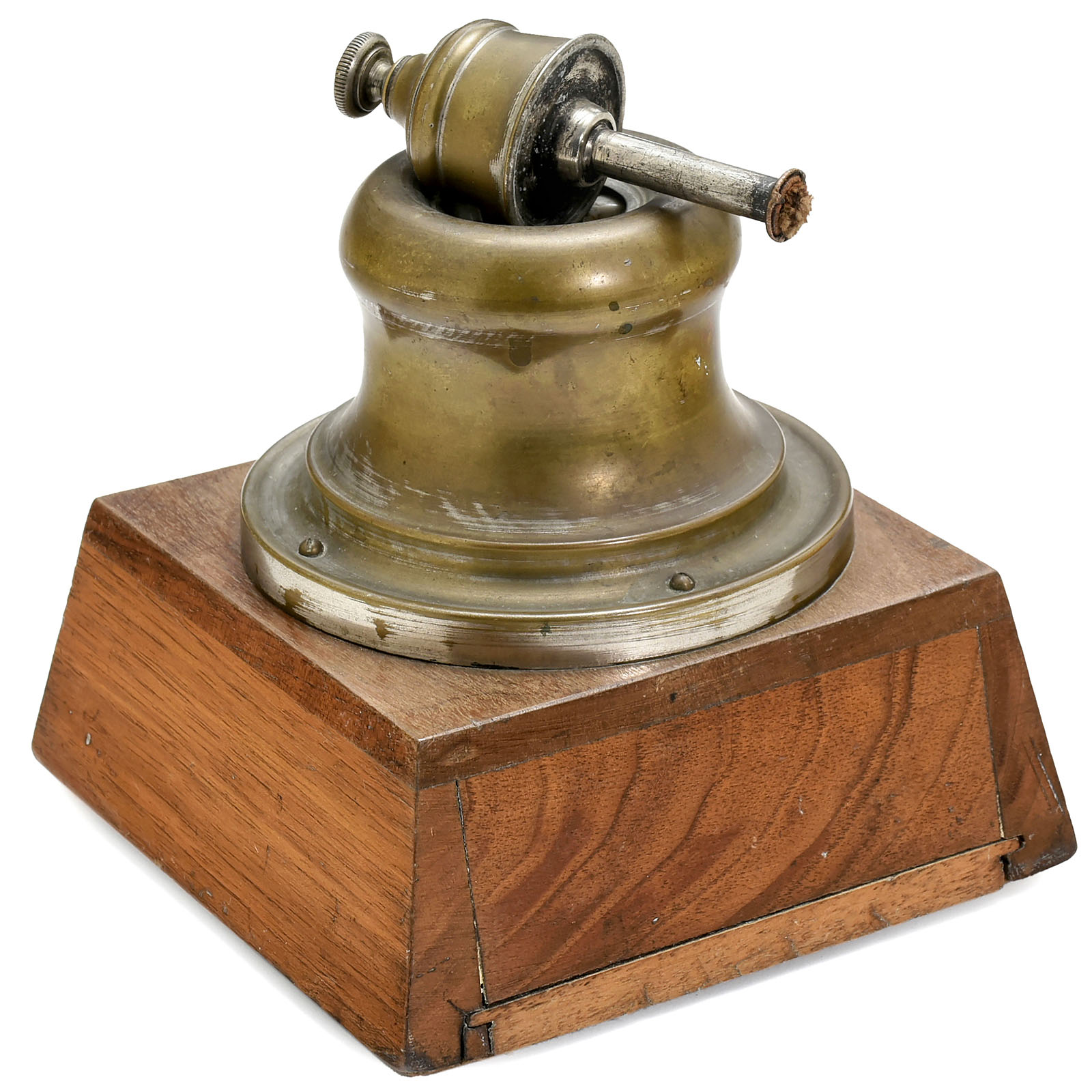 Table or desk model, base for batteries, brass case, ceramic insert, a technical curiosity.