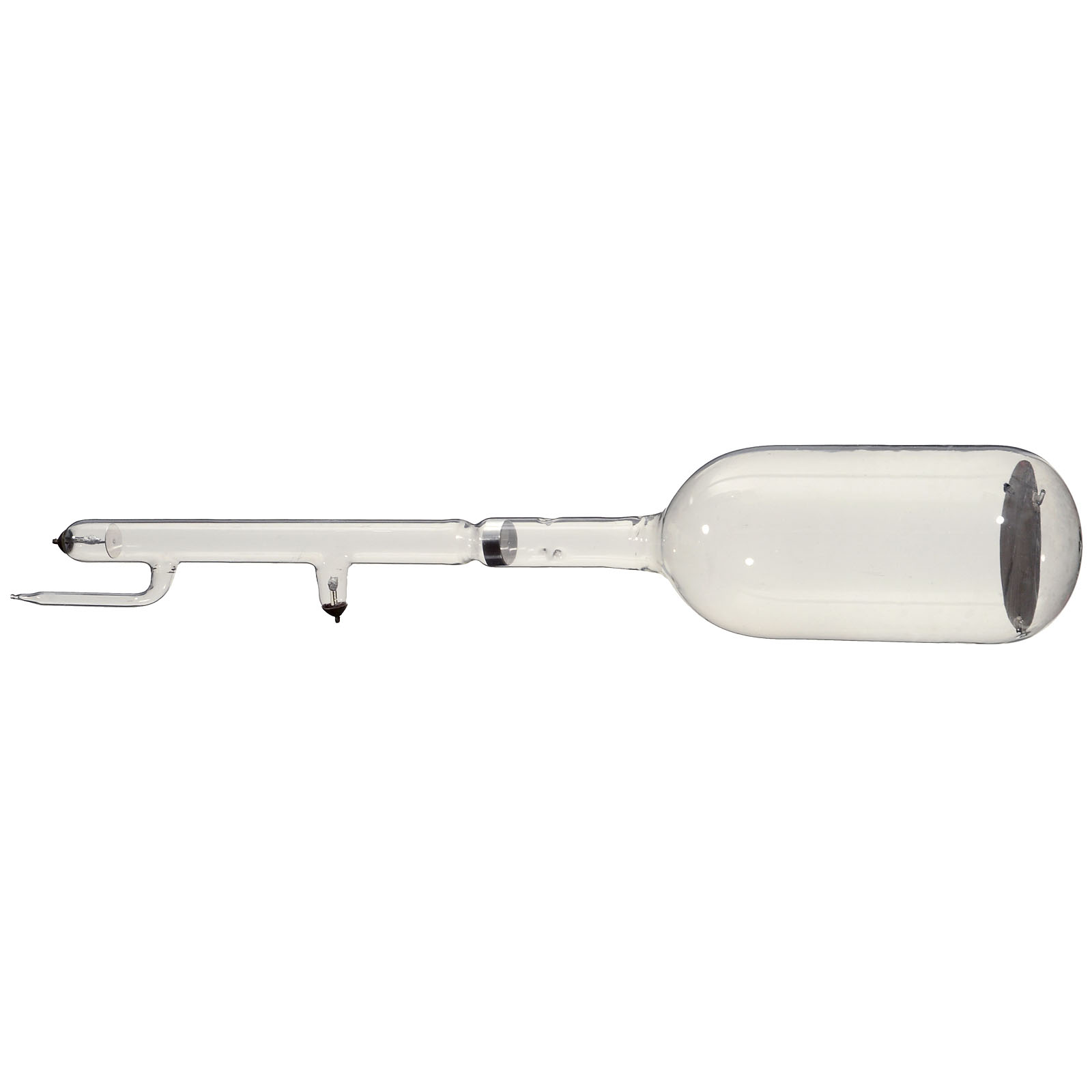 The "great-grandmother" of the television tube! Cold cathode tube, hand-blown glass, with cathode and anode for 10,000 to 20,000 V, aluminum plate with pinhole and 3 ½ in. diameter screen, length of the tube 23 1/5 in. – Ferdinand Braun, born in Fulda in 1850, developed his first cathode-ray tube at the University of Strasbourg in 1898. For that and other inventions he received the Nobel price in 1909 together with Marconi. – This tube offered here is an original Braun's tube, probably the only existing still in working condition!