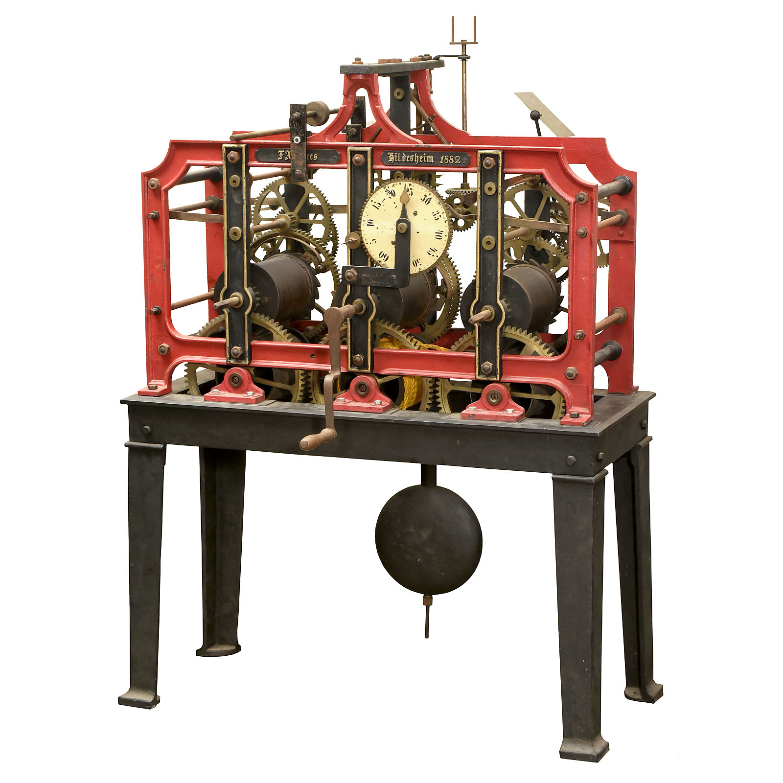 Manufactured by F.A. Beyes in Hildesheim. Cast-iron frame, bronze wheels, on heavy table, overall size 44 ½ x 23 x 55 in.
