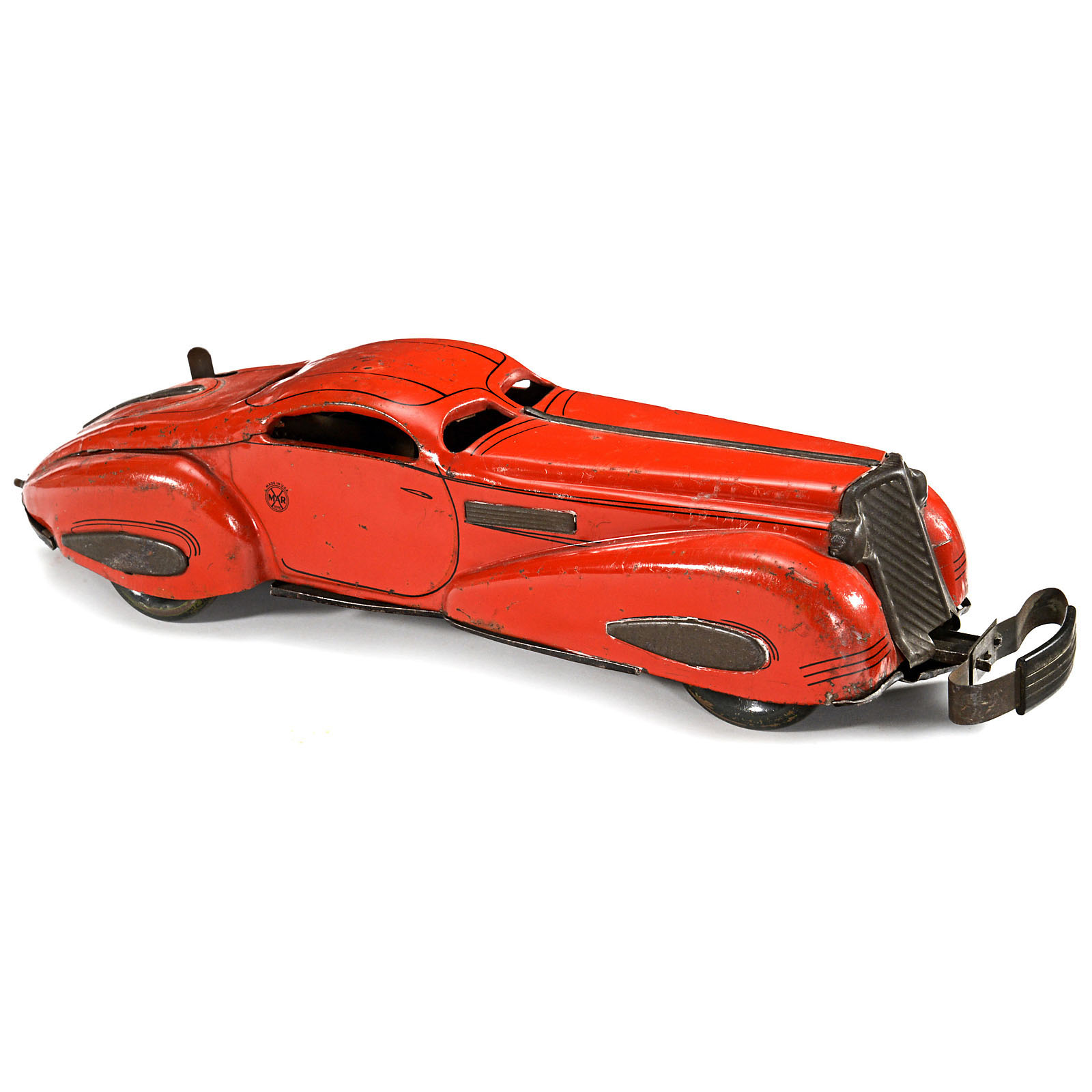 Louis Marx, USA. Lithographed tin, clockwork, working, bumpers reverse the direction (missing rear bumper), length 16 in.