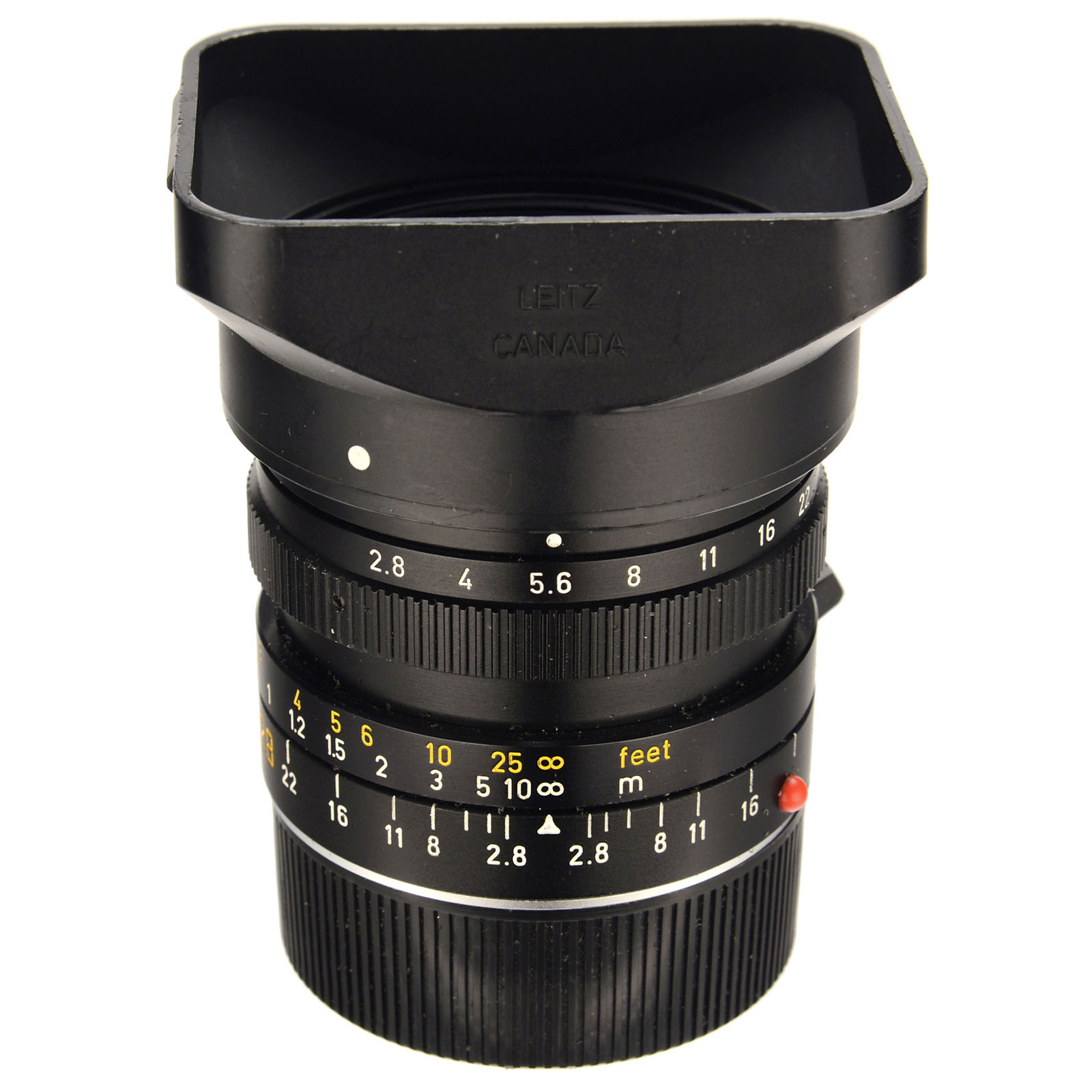 Leitz, Canada. No. 3041019, third computation, for E49 filters, Newton rings set into optics. Complete with caps, lens hood 12536 and box.
