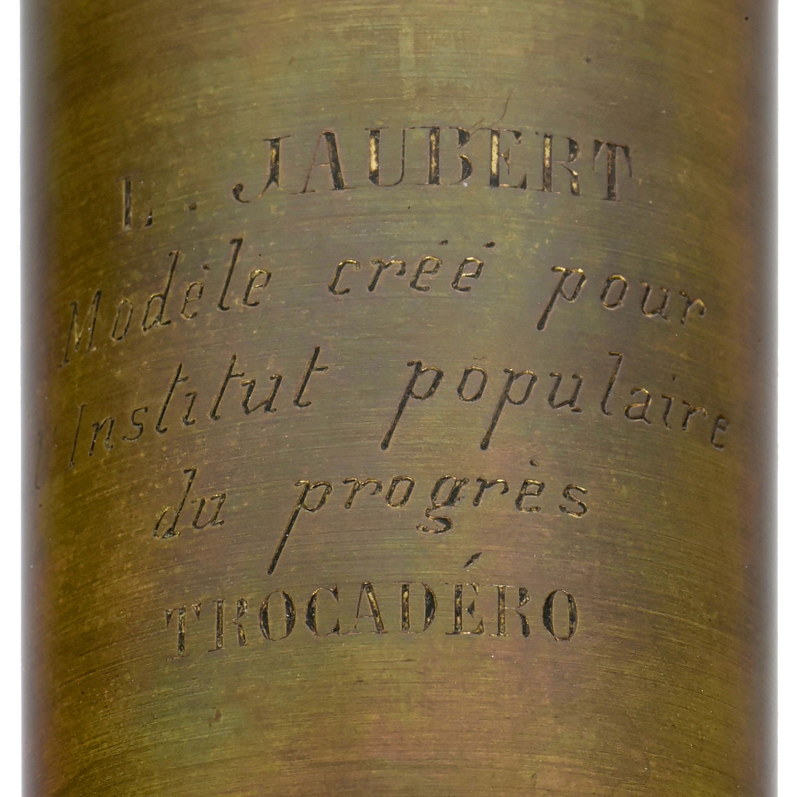 1) Jaubert compound microscope, signed on the tube: "L. Jaubert – Modèle créé pour l'Institut populaire du progrès Trocadéro", japanned iron horseshoe base, patinated brass, double mirror, substage pinhole diaphragm, unusual lateral tilting stage, double-draw tube adjustment, 1 ocular, 1 objective, height 13 in., c. 1860. – And: 2) English aquatic microscope by R. Field & Son, cary-type, signed "R. Field & Son, Birmingham, Society of Arts Prize", no. 586, original lacquered brass, 2 threaded eyepieces for single or combination use, rack-and-pinion focusing, mahogany box base, height up to 9 in., mirror cracked, c. 1850.
