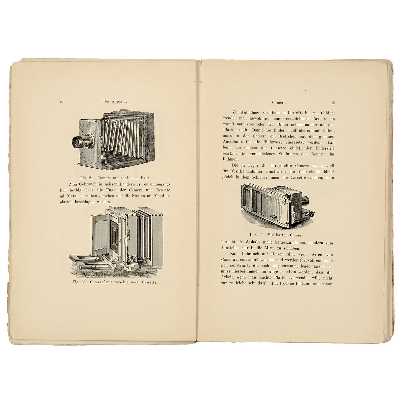 Dr. Paul E. Liesegang, "Der Photographische Apparat und dessen Anwendung zur Aufnahme von Portraits, Ansichten, Reproduktionen", 1884, 196 pages, with 118 illustrations. Age-appropriate condition.