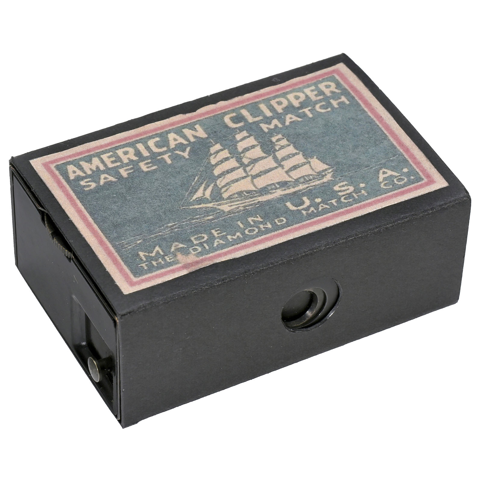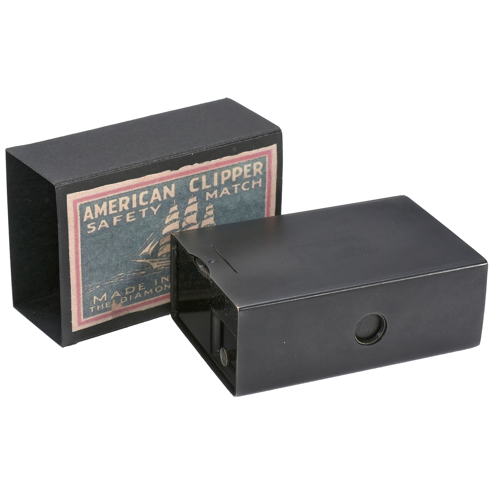 Kodak, USA. For "The Office of Strategic Service", size ½ x ½ in. on 16mm film, bakelite and metal body, shutter 1/60 sec., 5/25 mm Tessar-type lens, with original card box: "American Clipper Safety Match – Made in U.S.A. – The Diamond Match Co.". – Very rare subminiature camera, in excellent condition! – Literature: Michael Pritchard and Douglas St. Denny, "Spy Camera", p. 140.