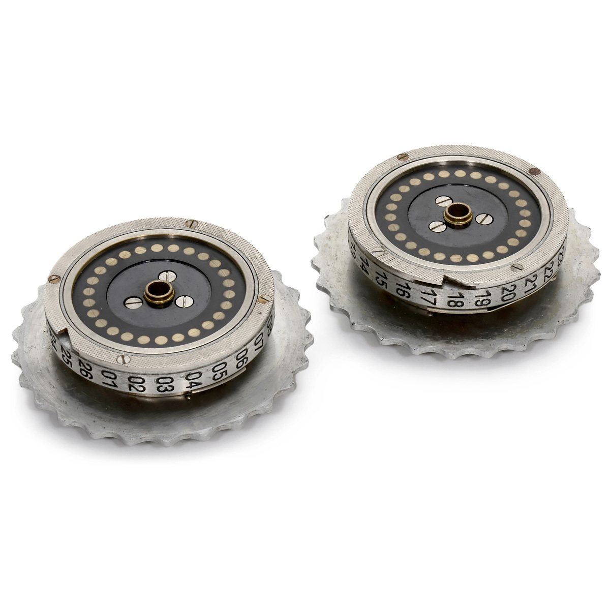 2 Original Enigma Wheels in Wooden Box, 1936