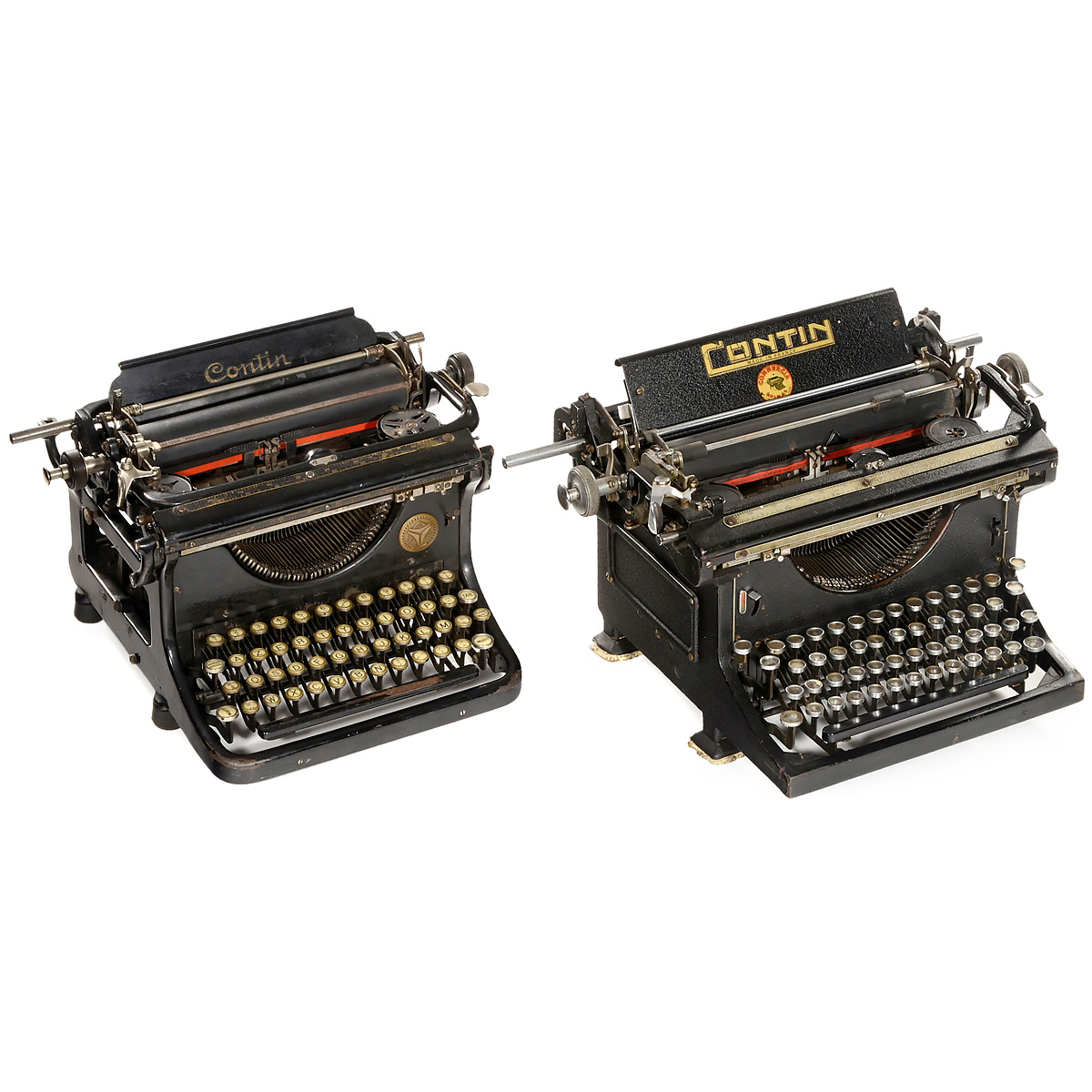 1) Mod. A. French model licensed (1922) by Seidel & Naumann, Dresden, nearly identical to their "Ideal Mod. D". Serial no. 5153 (3/2) – And: 2) "Mod. C 28", 1932. Improved French model with ball-bearing carriage. Serial no. 302117. (3/2)