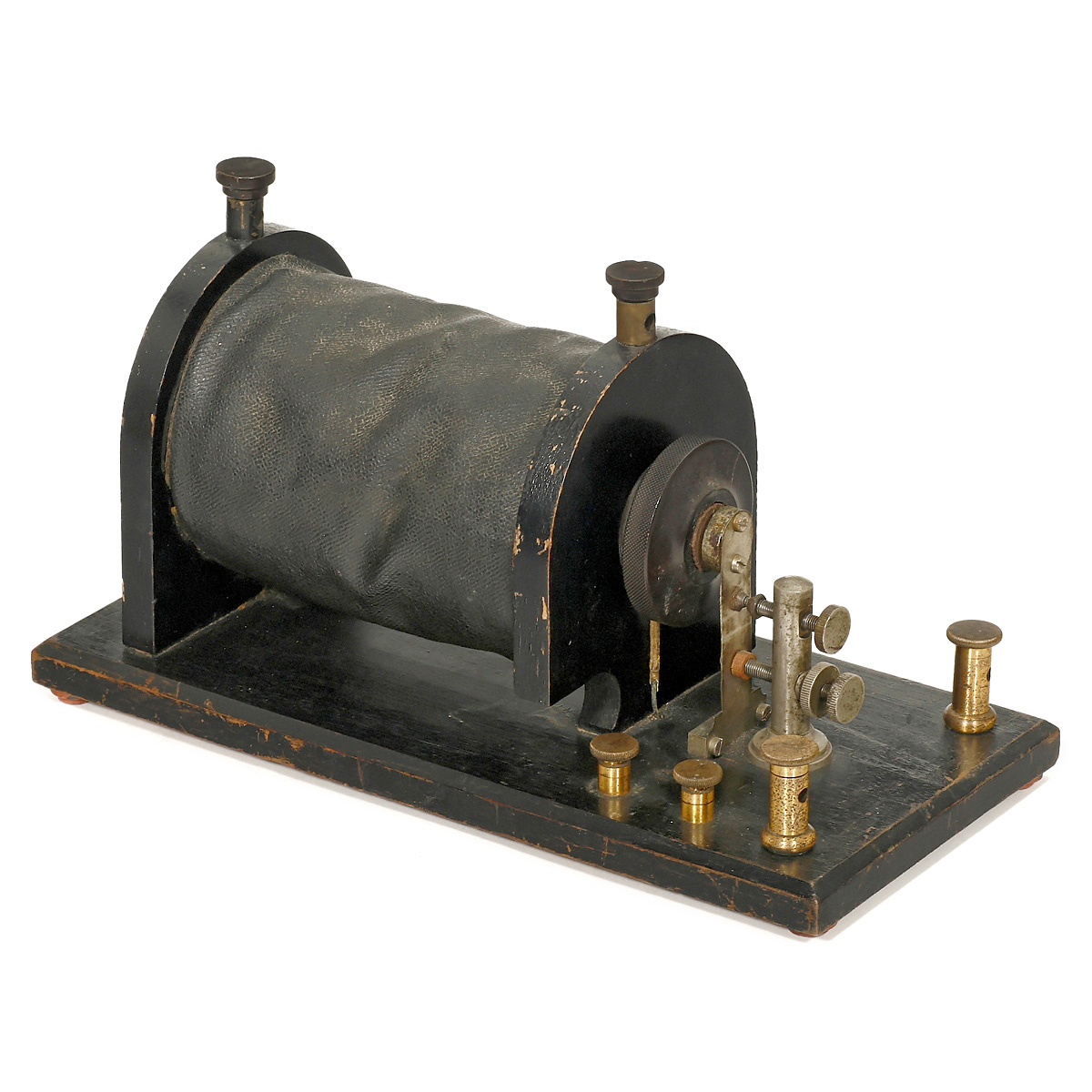 Length of the coil 9 7/8 in., up to approx. 4 in. spark length, on ebonized base, overall width 13 ¾ in.