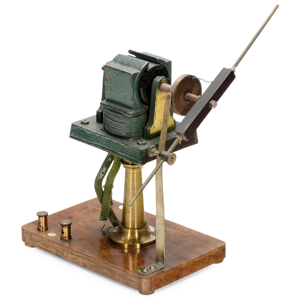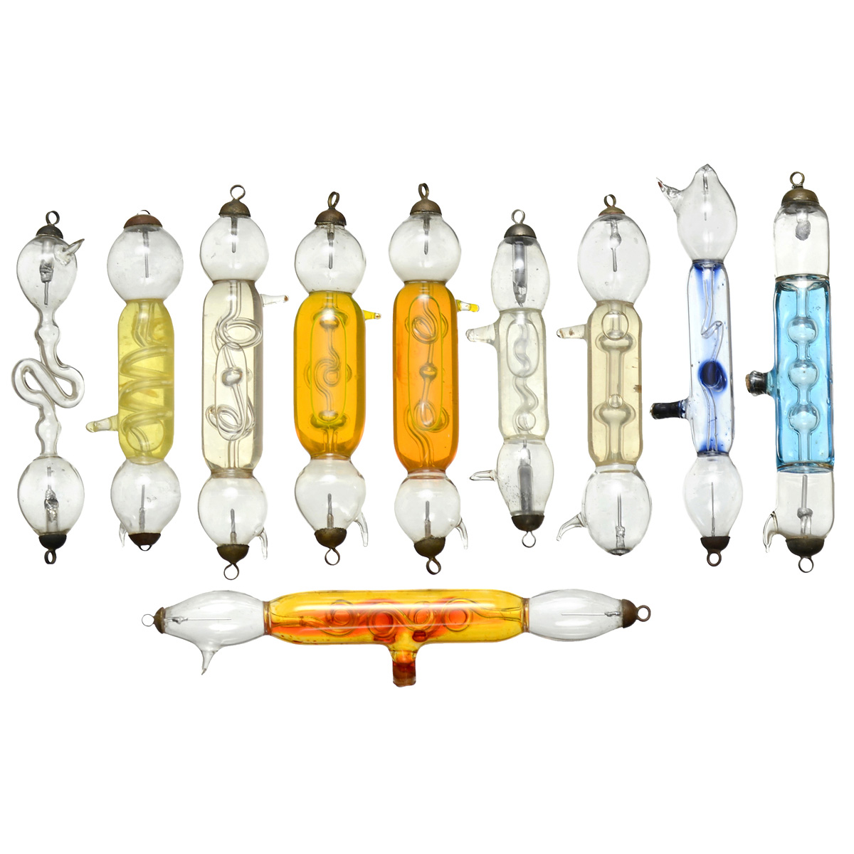 Physical demonstration model with rotating Geissler tubes, on brass pillar and walnut base, height 7 ½ in., with 10 tubes of various shapes and colors.