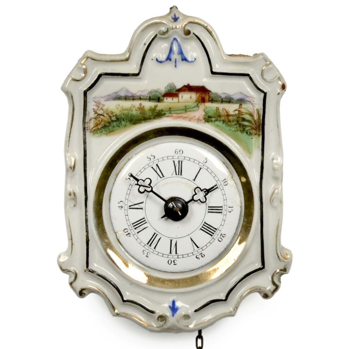 5 Black Forest Porcelain Shield Clocks, c. 1880