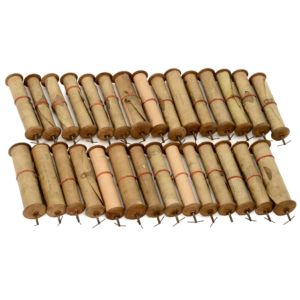 Manufactured by Bruno Geißler, Leipzig, for paper rolls, handcrank-driven, small second rewind crank, black painted case, original decals, 2 lateral volume-control flaps, mechanism needs restoration, with 30 original rolls (waltzes, polkas, marches and others).