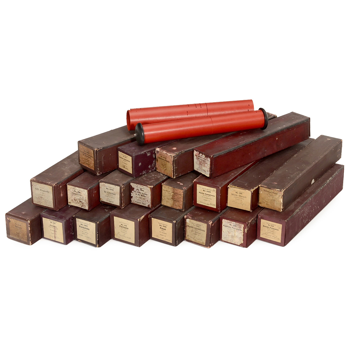 For Welte-Mignon reproducing pianos: Freischütz, Carl Maria von Weber – Grande Polonaise Es-Dur – Frederic Copin – XIII Rhapsodie, Franz Liszt – Consolation No. 3, Franz Liszt – El Chichon, Angel Villoldo – Faust, Gounod – Oktaven-Etude, Carl Czerny – Fantasie f-Moll, Chopin – Danse Espagnole, Granados – Lasoiréedane Granade, Claude Debussy – Sonate cis-Moll, Ludwig van Beethoven – Die Ehre Gottes in der Natur, Beethoven – Sonata Apassionata, Beethoven – Fünfte Sinfonie 3. Satz, Peter Tschaikowsky – Militär-Marsch, Schubert-Tausig – Am stillen Herd zur Winterzeit, Richard Wagner – Fantasie C-Dur, Franz Schubert – Rigoletto Paraphrase, Franz Liszt – La Grand Duchesse de Gerolstein, Jacques Offenbach – Scherzo-Valze, Chabrier. – Played by famous artists, good condition, in boxes.