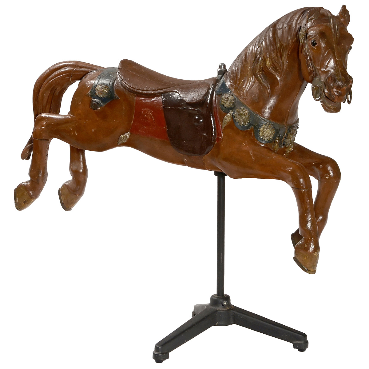 Fine carved limewood, wooden ornaments, inset glass eyes, carved tail. Length 40 in., on later stand.