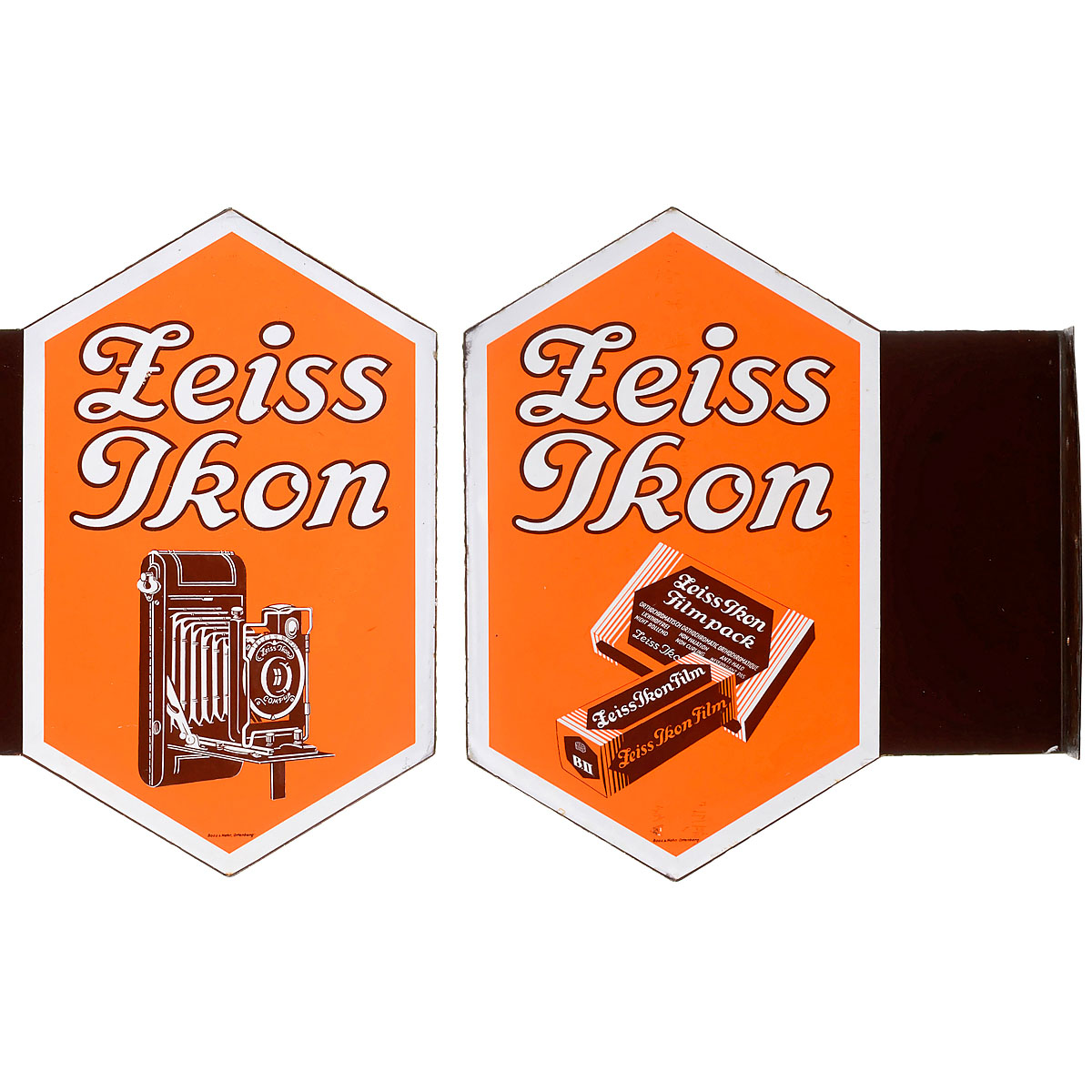 Manufactured by: Boos & Hahn, Ortenberg, 21 ¼ x 23 3/5 in., bracket sign with two different enameled motifs.