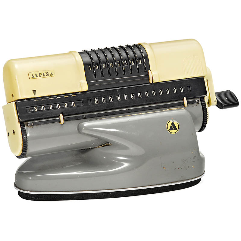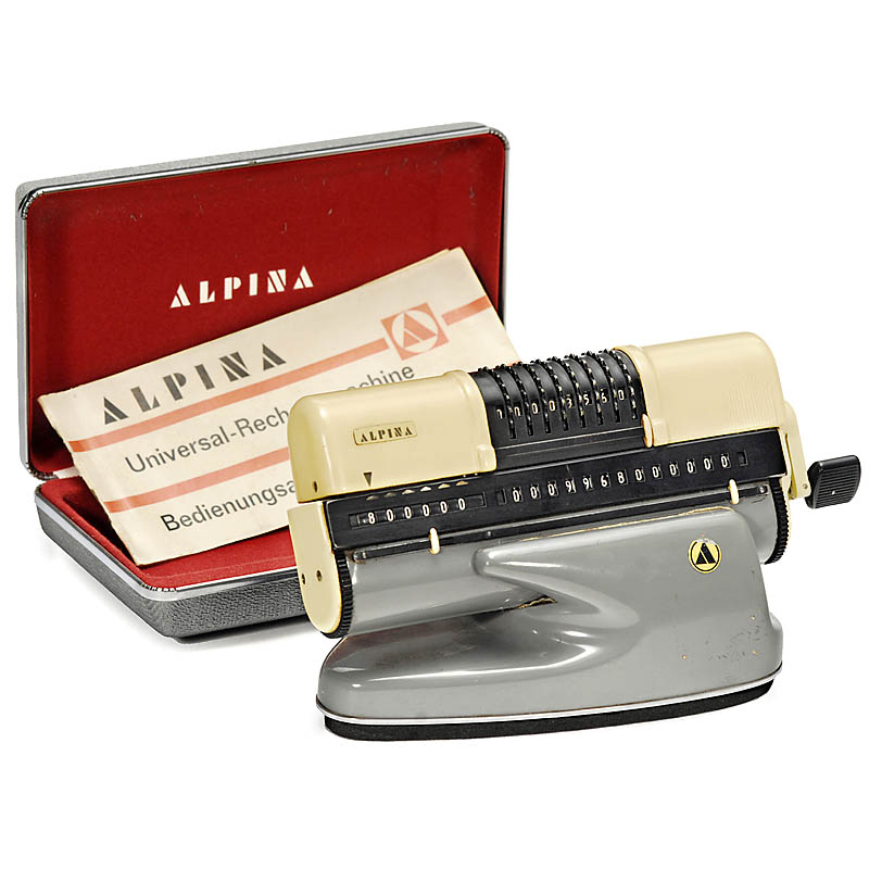 配带原装盒的计算器(四类基本运算方式). 罕见的基座和德语操作说明书. 很好的原厂成色! 广受欢迎的收藏品!